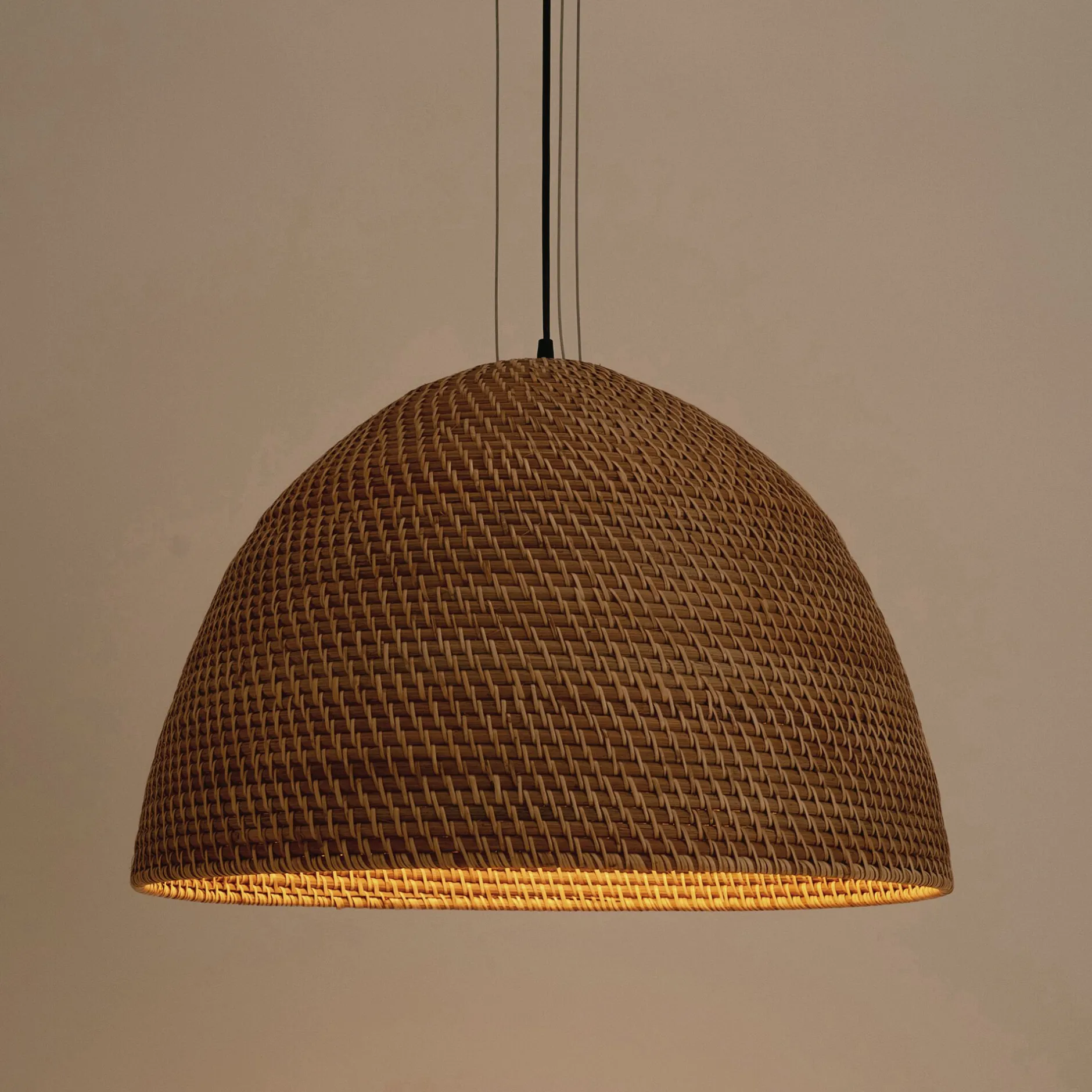 Cette suspension en rotin s’habille d’un abat-jour en forme de dôme, créant un jeu de lumière doux et chaleureux dans la pièce. Le tressage naturel du rotin diffuse la lumière avec finesse, insufflant une ambiance accueillante et apaisante. Vendue avec un câble en PVC, cette suspension électrifiée est prête à l’emploi — il ne reste qu’à ajouter une ampoule de votre choix pour compléter l’ensemble. Parfaite pour un salon, une chambre ou une cuisine, elle apporte une touche organique et authentique.