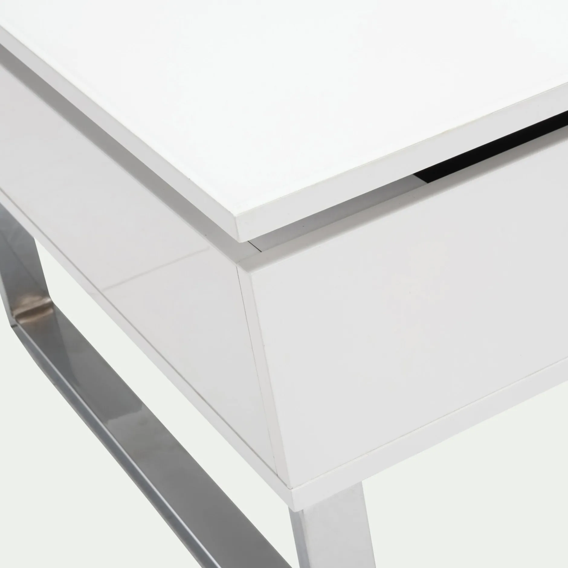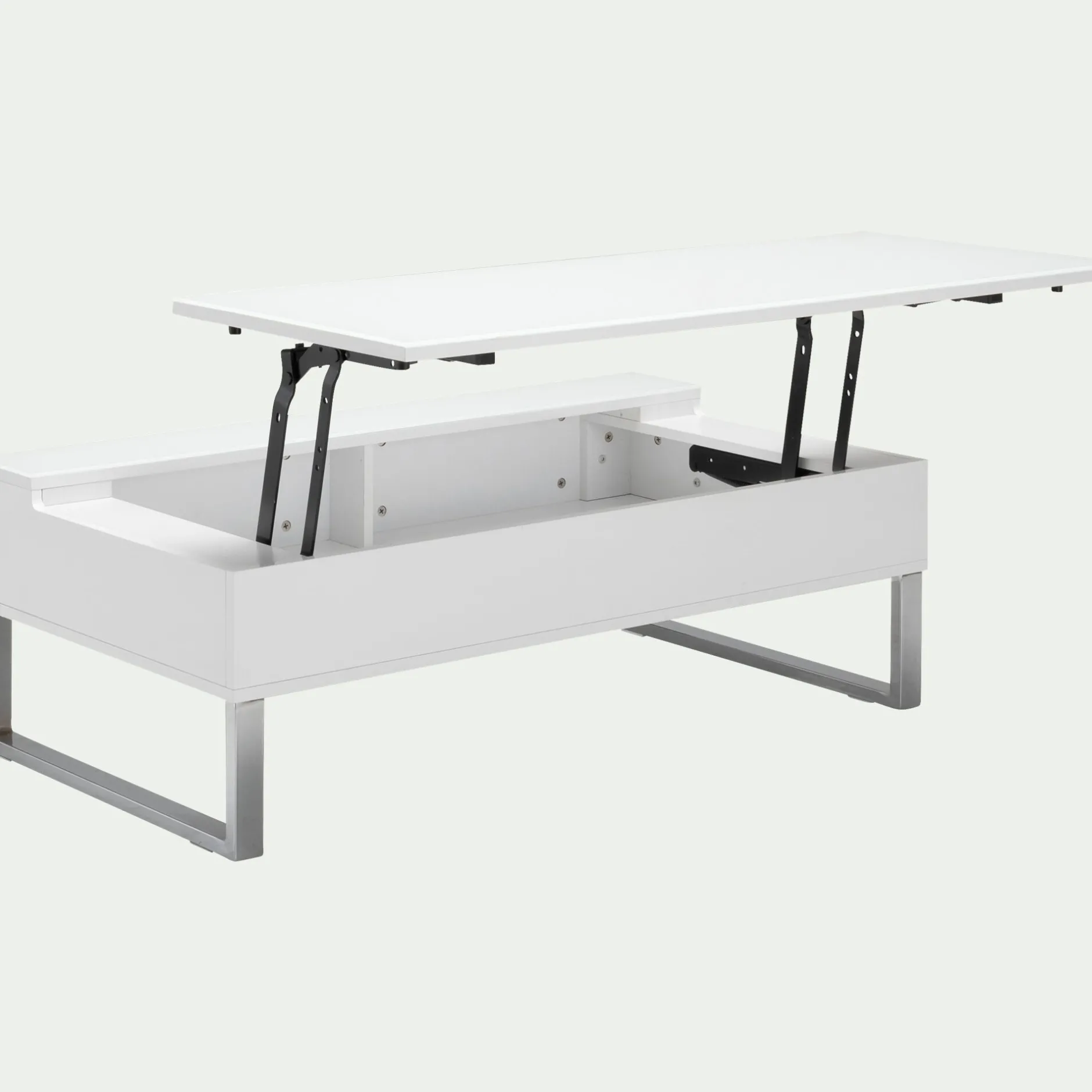 Cette table basse blanche avec tablette relevable vous offre un vaste espace de rangement très appréciable pour stocker télécommandes et magazines. En position haute, sa tablette fera office de table de repas pour 2 personnes. Ce meuble de salon est donc très pratique pour aménager les petits espaces de type studio ou chambre d’étudiant.