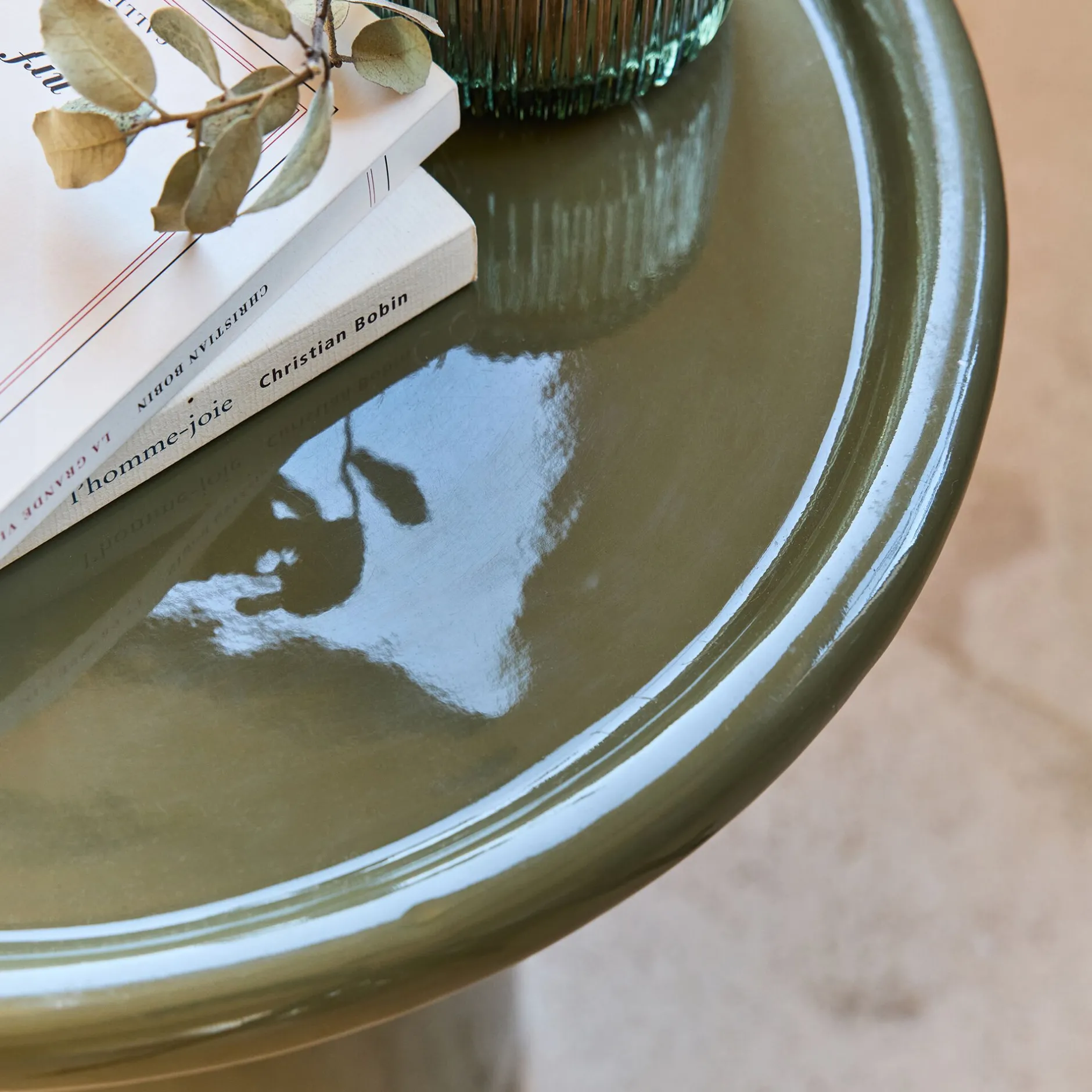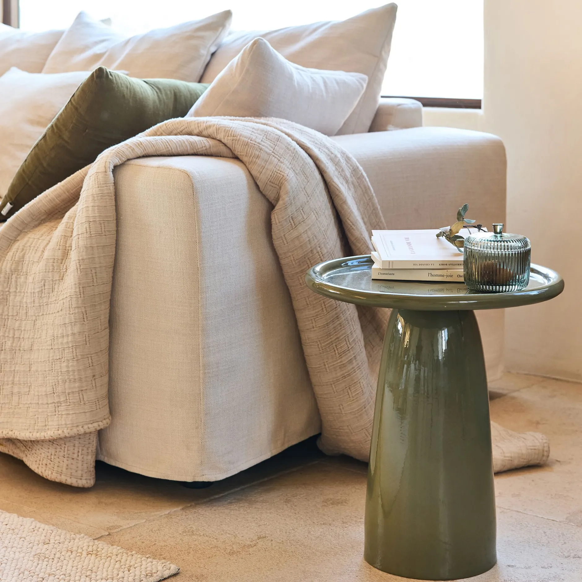 Table De Chevet|Bout De Canapé*alinea Bout de canapé en grès et céramique D40xH45cm – cèdre Vert