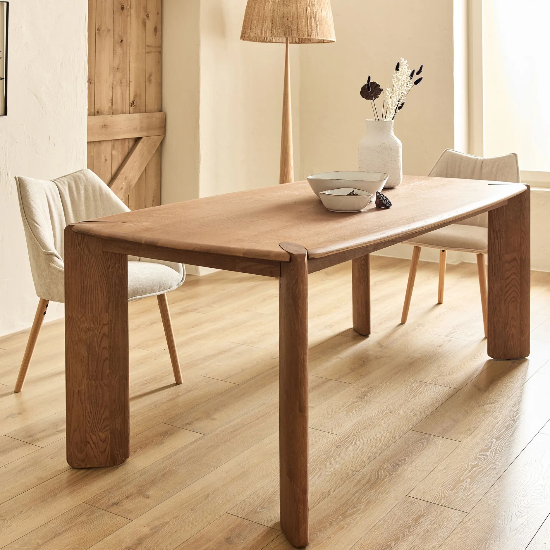 La table de repas Bastides séduit par son élégance naturelle et ses lignes douces, avec un plateau rectangulaire de 200 cm légèrement bombé. Conçue en chêne massif certifié FSC, elle allie durabilité et authenticité. Son piètement original à la forme fantaisie apporte une note design qui attire le regard. Parfaite pour accueillir de 6 à 8 convives, cette table fixe promet des moments gourmands et chaleureux autour de repas partagés.