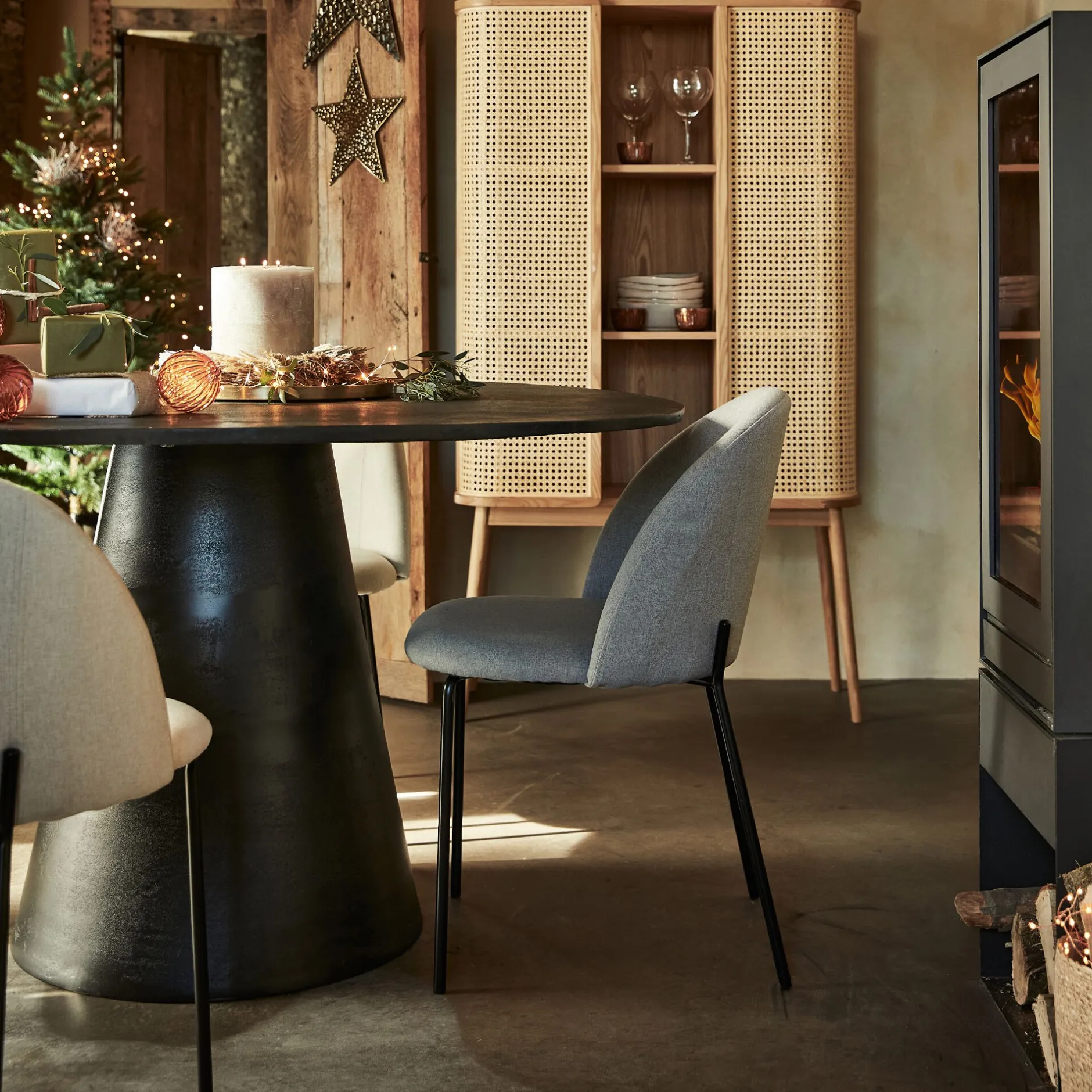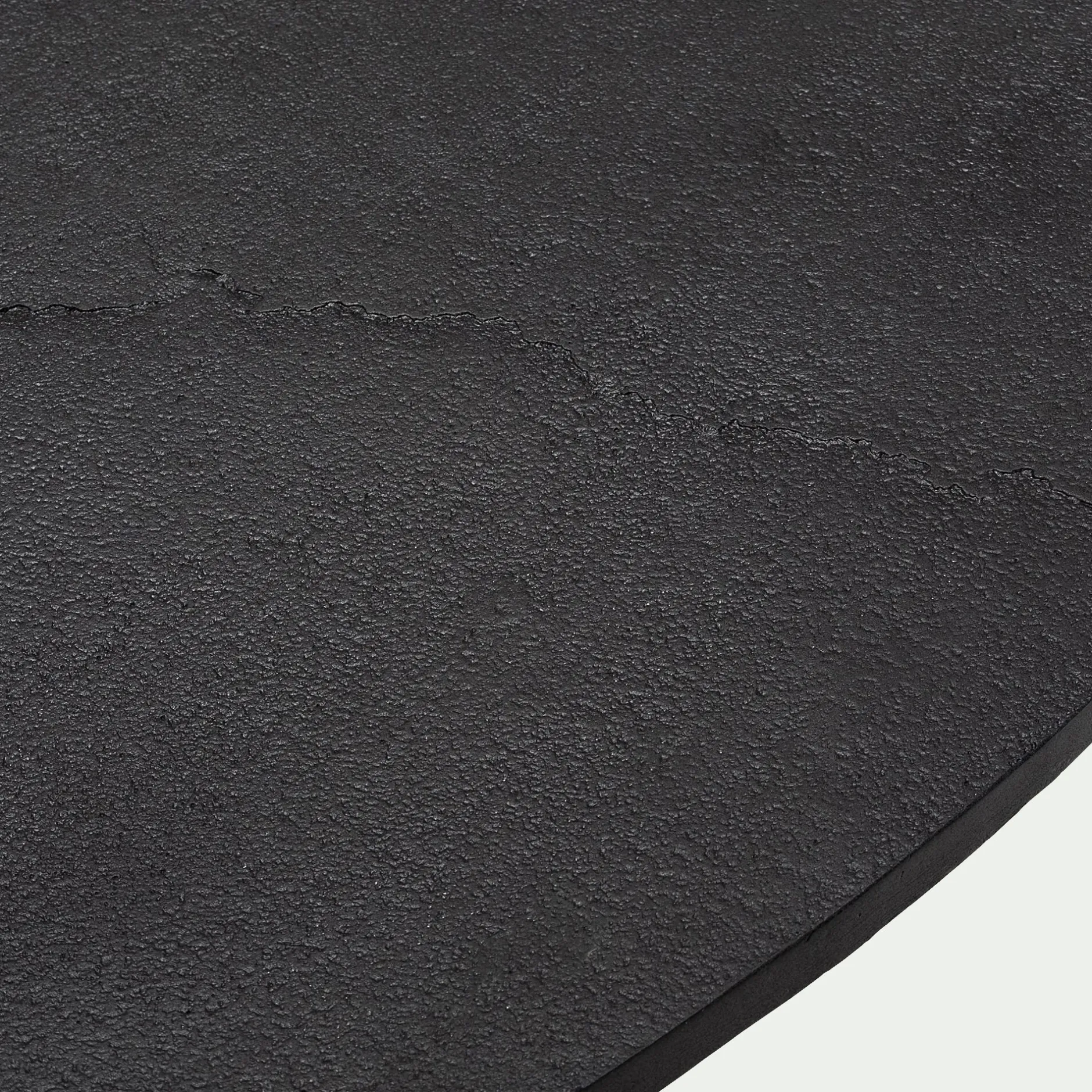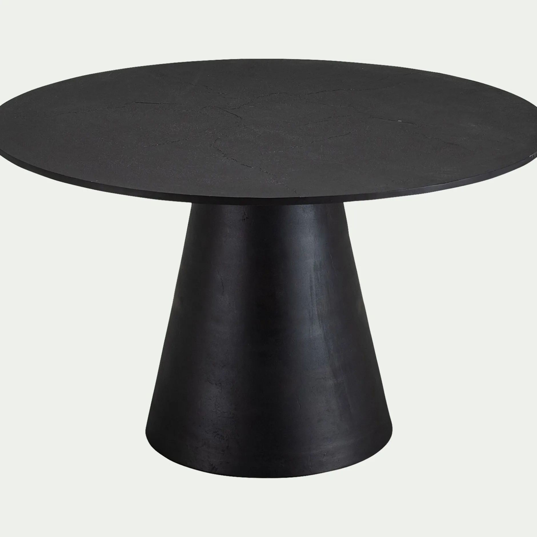 Sublimez votre salle à manger avec la table de repas Jilica. Cette table ronde affiche des courbes contemporaines, douces mais au caractère puissant. Le plateau rond de 135 cm de diamètre repose sur un pied central conique. Une très belle pièce qui apporte du contraste à la décoration. Confectionnée en aluminium coulé, cette table de repas en métal arbore une finition effet pierre usée. Inspirée du monde minéral, cette table de repas noire présente de charmantes aspérités, propres à tout élément naturel. Jusqu’à 6 convives peuvent se réunir autour de cette table fixe afin de partager un repas dans une atmosphère raffinée.