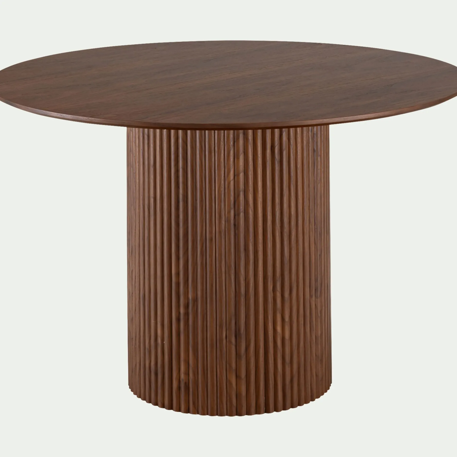Cette table de repas ronde incarne l’élégance et la convivialité, offrant un espace harmonieux pour réunir 4 à 6 convives. Son bois foncé, certifié FSC, exprime un engagement durable et une beauté naturelle, tandis que le pied central, subtilement strié, apporte du relief et de la texture. Parfaite pour sublimer un intérieur contemporain, cette table ronde en bois allie la chaleur de la matière naturelle à un design moderne, créant un espace de partage de caractère.