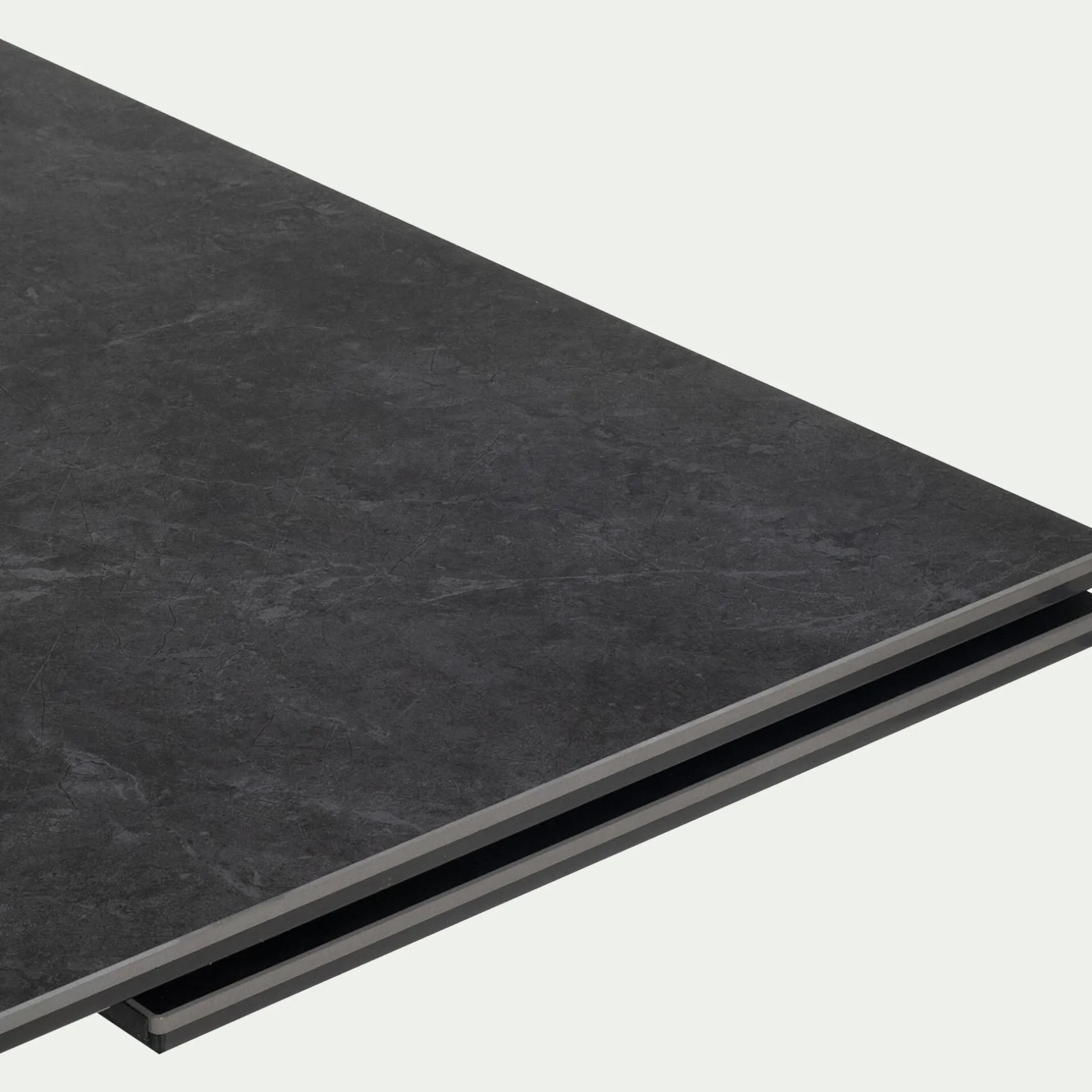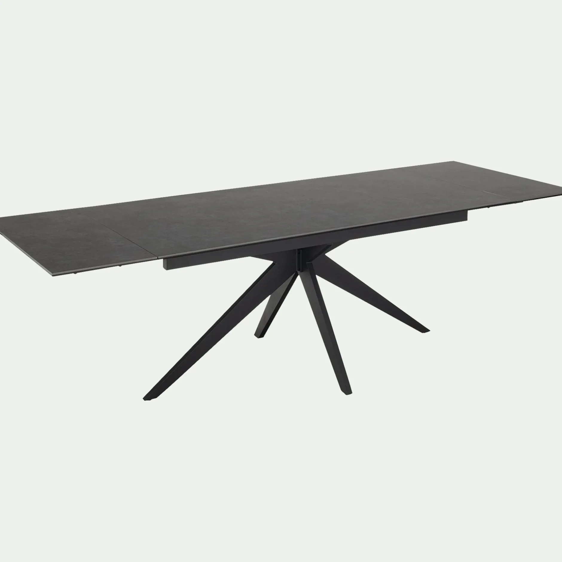 Avec son design contemporain tout en noir, cette table de repas extensible allie élégance et fonctionnalité. Son plateau associe la résistance de la céramique à la solidité du verre trempé, tandis que son piètement en métal dessine une silhouette graphique et moderne. Longue de 180 cm au quotidien, elle s’adapte aux grandes tablées grâce à deux rallonges indépendantes pour atteindre jusqu’à 260 cm. Faciles à mettre en place, elles permettent d’accueillir confortablement jusqu’à 10 convives. Une table aussi belle que pratique pour recevoir sans compromis.