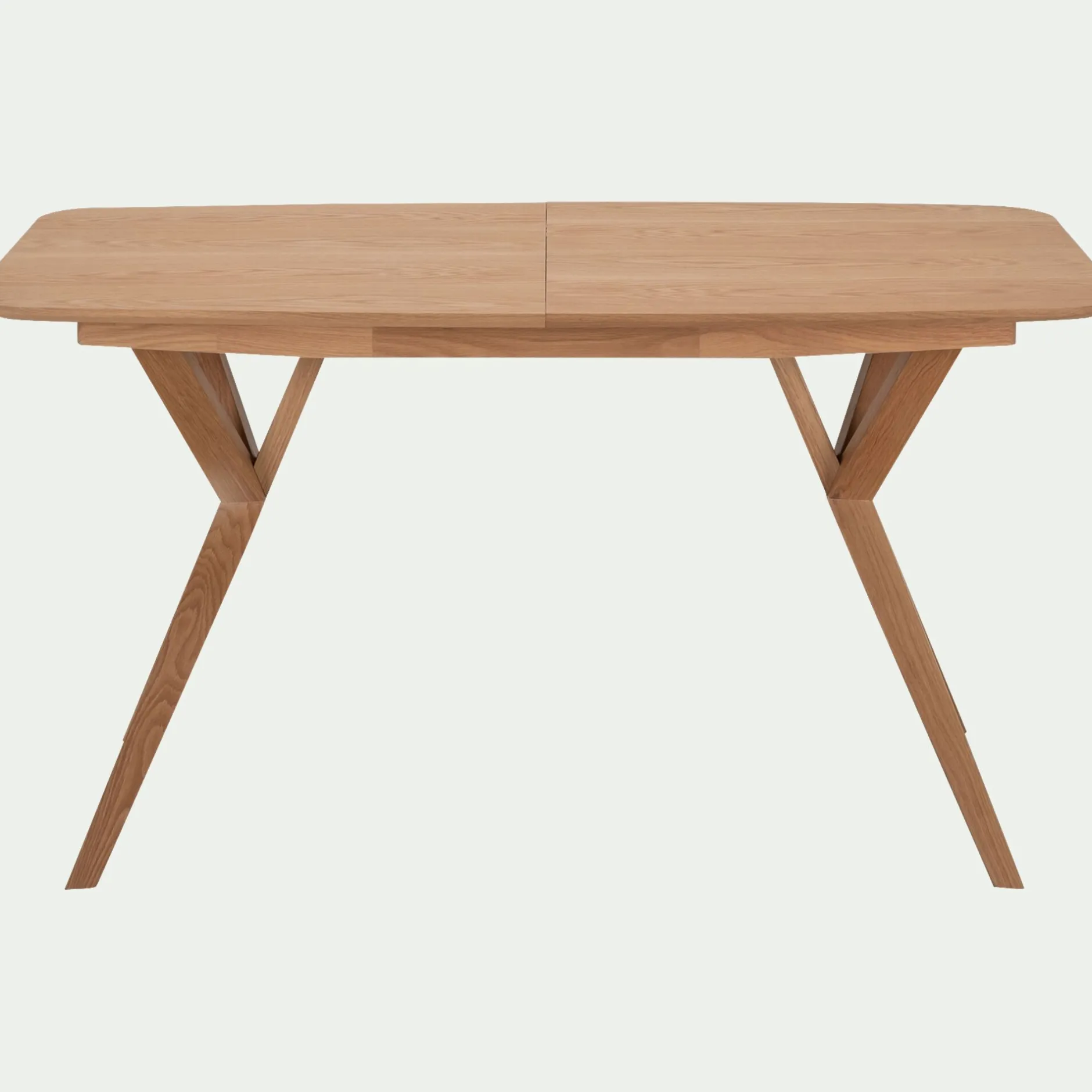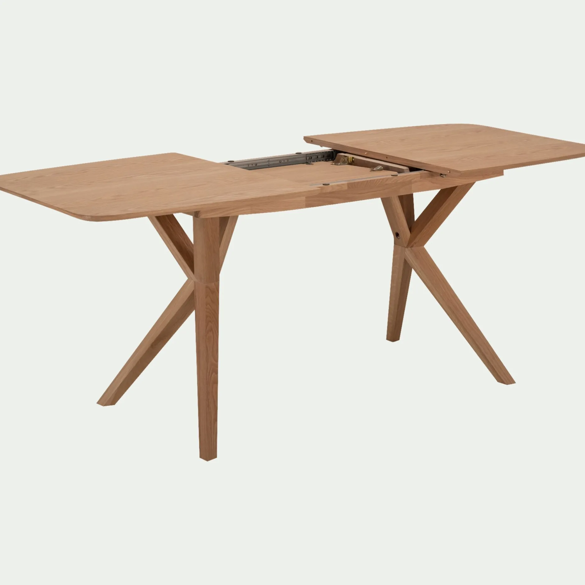 Plateau en panneau de fibres moyenne densité, placage chêne. Piètement en chêne massif certifié FSC, finition vernis polyuréthane naturel.Dimension de l’allonge papillon : L40 cm