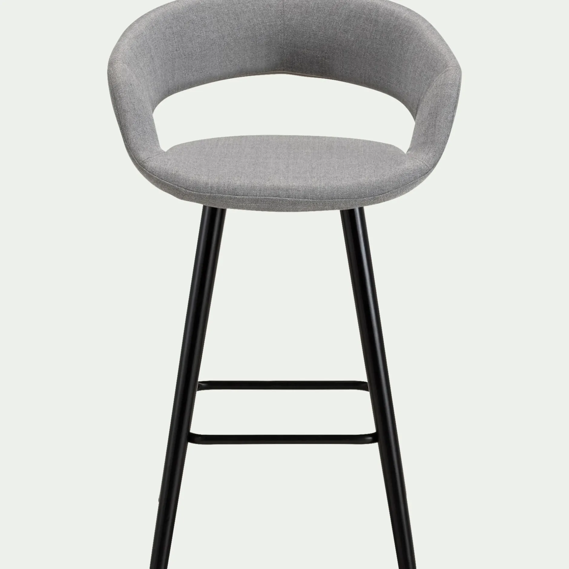 Le tabouret haut Joyau offre un style moderne et indémodable qui donne une élégance incomparable. Son confort est prouvé par son assise en mousse de 26kg/m3 et d’harmonieux accoudoirs. Son piétement en chêne massif noir mat et son doux tissu gris en font un partenaire idéal pour vos moments de convivialité autour du bar. Vous trouverez dans la même gamme les chaises assorties.
