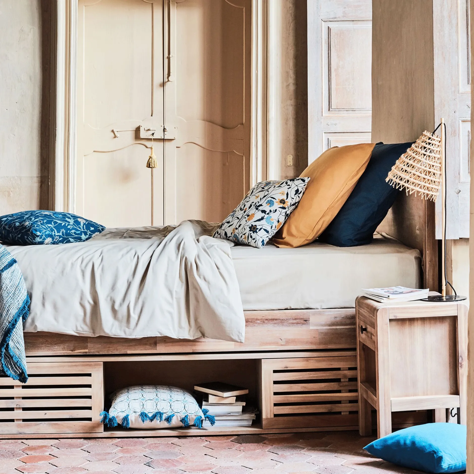 Toute la gamme de linge de lit Calanques s’inspire des paysages méditérannéens dans le choix des couleurs. Du bleu niolon rappelant l’eau turquoise de la méditérranée ensoleillée au vert cèdre évoquant les grands épineux…Toutes les teintes invitent à un bain de soleil. Ce lot de deux taies d’oreillers est disponnible en deux tailles (carrée et rectangle). Elles sont 100% coton de qualité 57 fils/cm². De ce tissage dense et exigeant résulte un tissu épais et résistant dans le temps. Ce coton est doux aussi bien pour le toucher que pour les yeux !