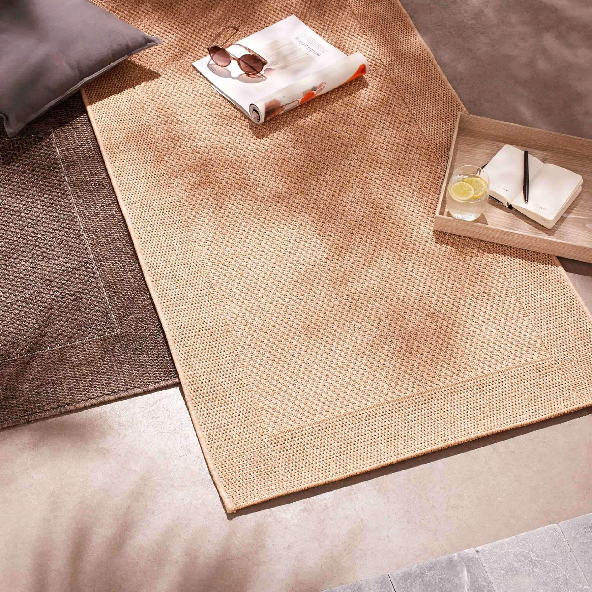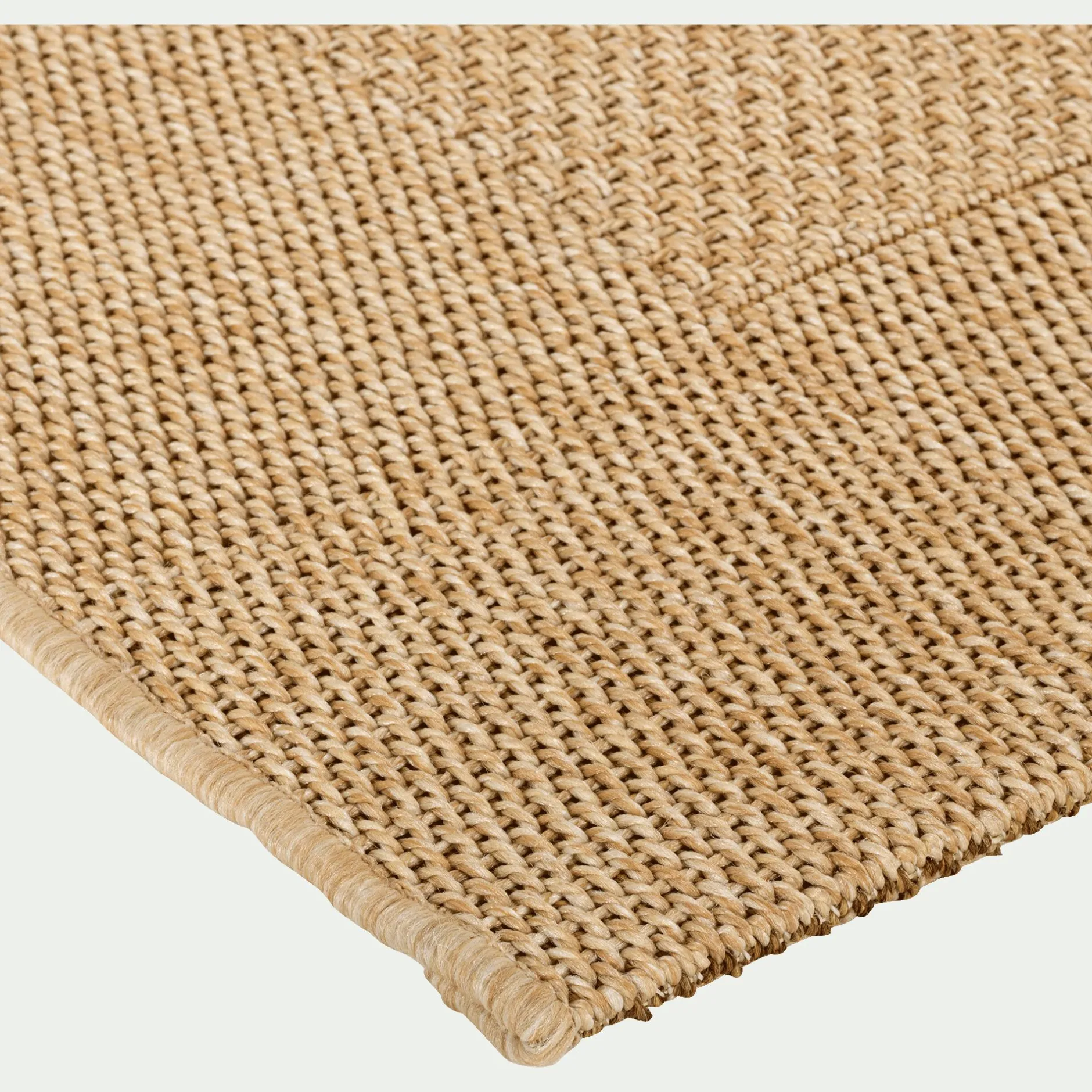 Un tapis qui s’adapte aussi bien à une utilisation intérieure qu’extérieure en 120x170cm au coloris miel résistant aux intempéries pour décorer votre balcon ou votre terrasse ! Ce tapis tissé plat en fibres synthétiques propose une très belle imitation du sisal, facile d’entretien, et extrêmement solide, vous pourrez le nettoyer à l’eau. Il habillera votre sol avec élégance pour un rendu naturel.