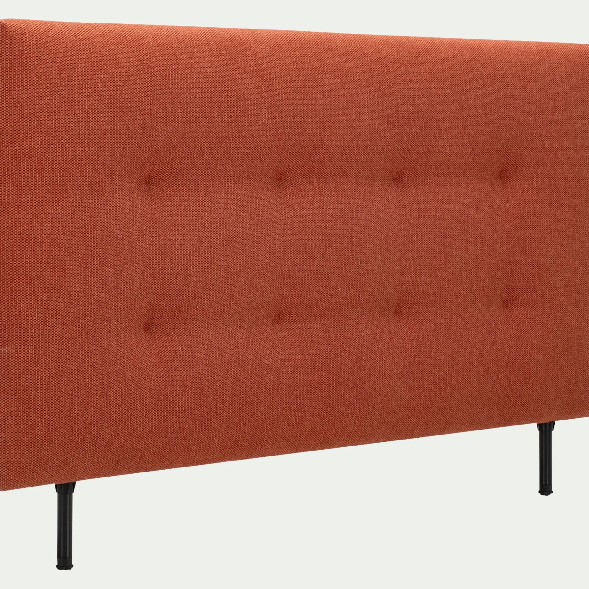 Habillez votre chambre d’une touche de caractère avec cette tête de lit terracotta de 182 cm. Son capitonnage raffiné et sa silhouette épurée apportent une ambiance cosy et contemporaine à la déco de votre chambre à coucher. Conçue en bois massif, rembourrée de ouate et revêtue d’un tissu doux, elle offre un confort enveloppant au quotidien. Réglable en hauteur, elle s’ajuste facilement à votre lit pour un rendu sur mesure. Fabriquée en Roumanie, elle incarne un style intemporel aux finitions soignées.