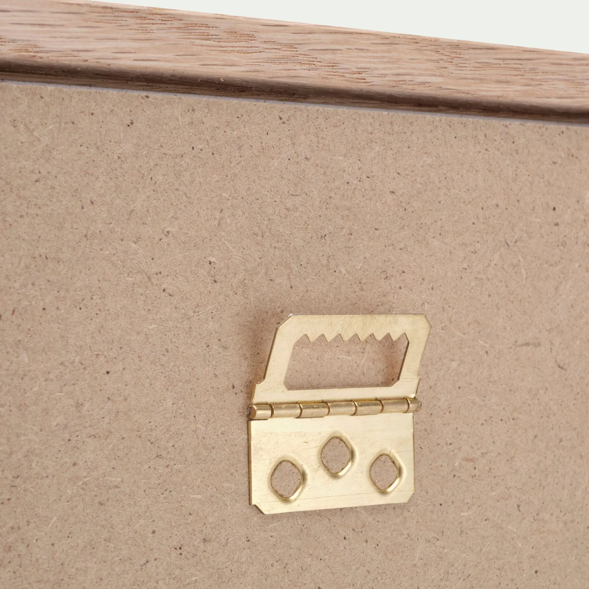 Dos en MDF 45%, cadre en chêne 13%, vitre en verre 45%.
