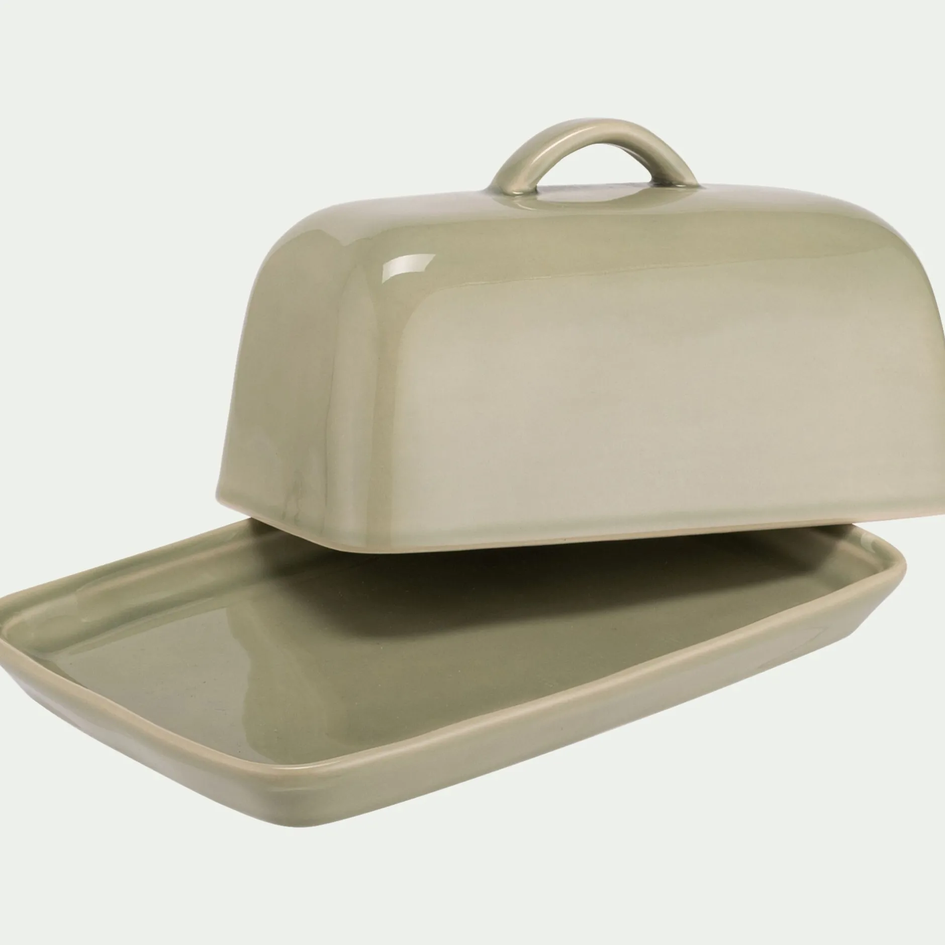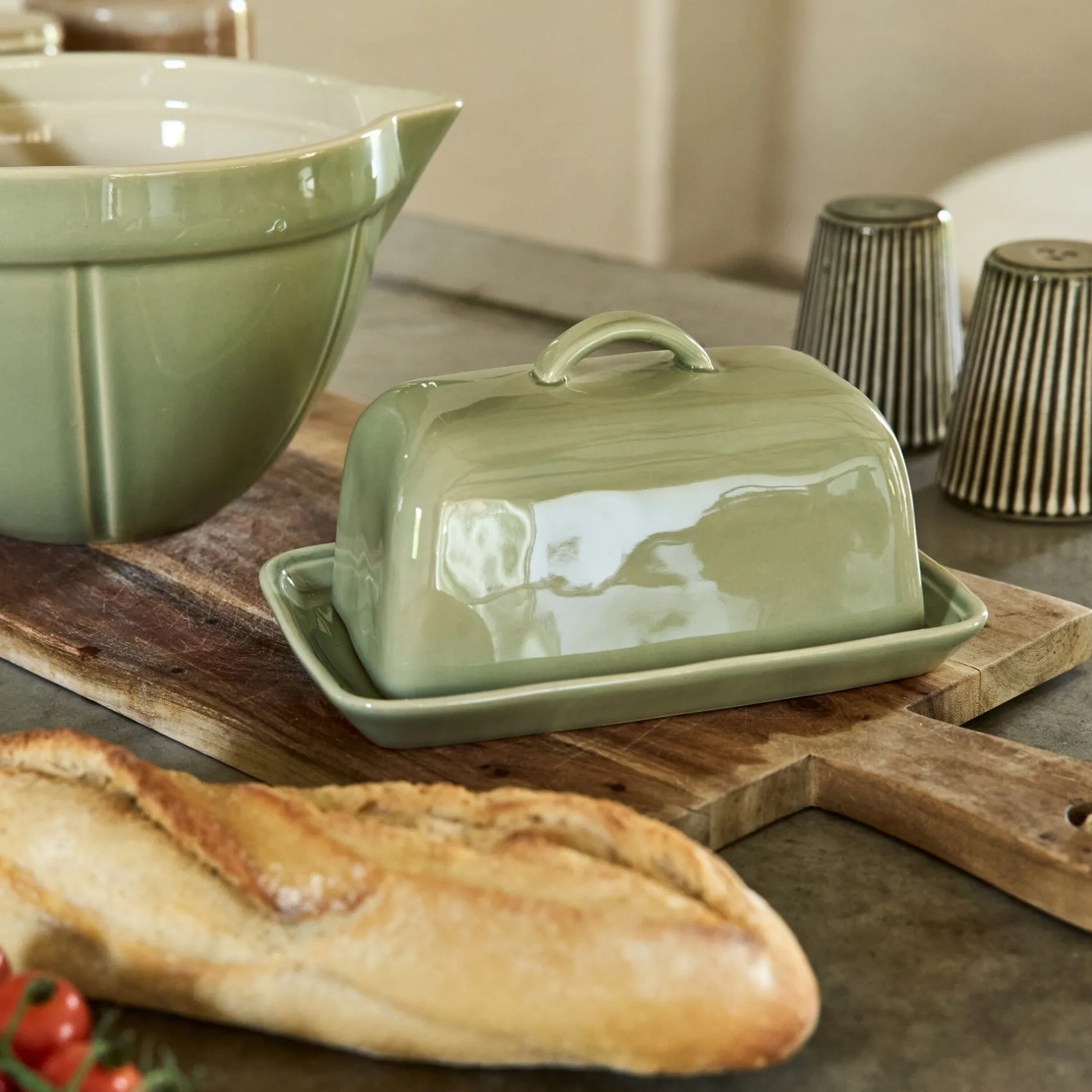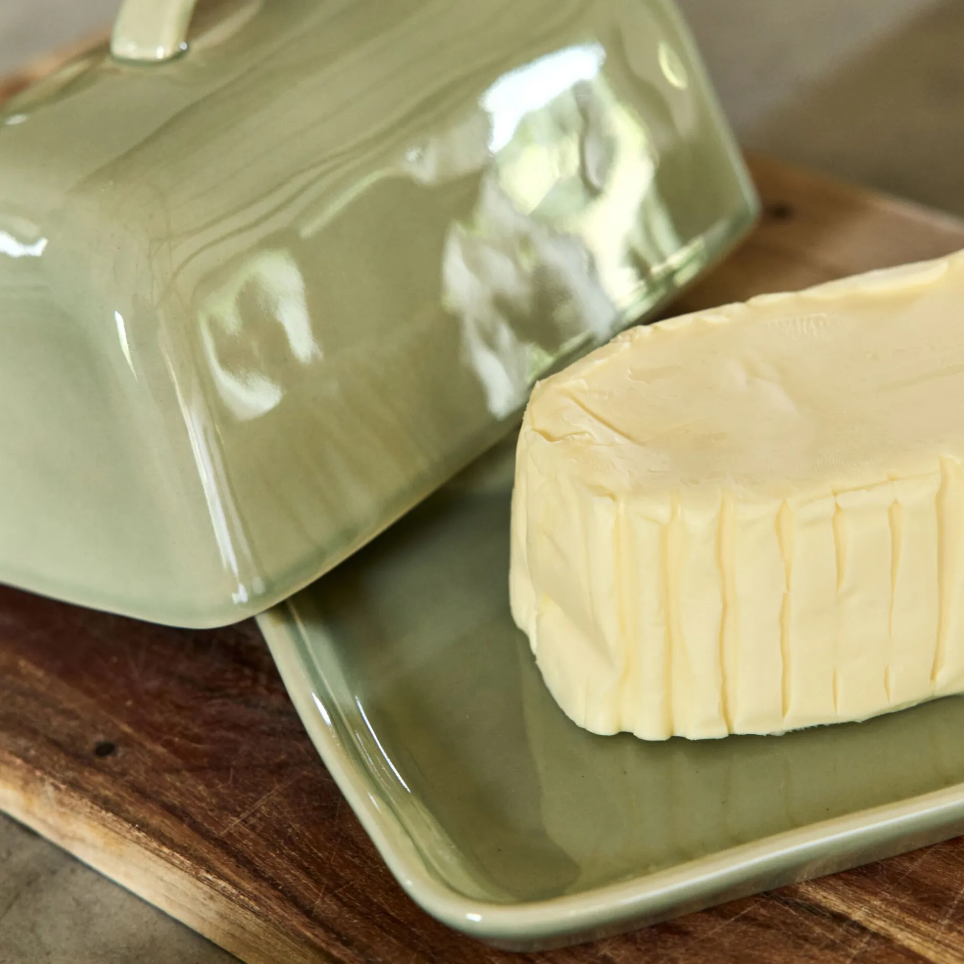 Fabriqué en grès, ce beurrier allie charme brut et praticité au quotidien. Il se compose d’une coupelle rectangulaire aux angles arrondis et d’un couvercle assorti, muni d’une petite anse pour une prise en main facile. Son design épuré protège le beurre tout en préservant ses saveurs. Habillé d’un coloris vert doux et lumineux, ce beurrier en grès apporte une touche fraîche et délicate à la table du petit-déjeuner comme aux repas du quotidien.