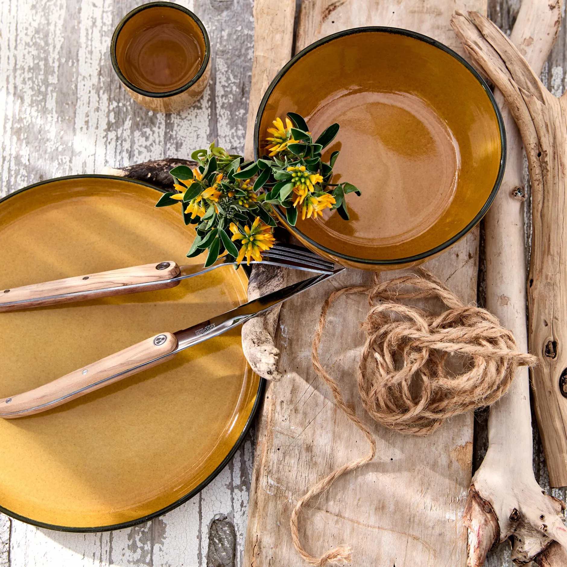 Découvrez ce service de petit-déjeuner en grès qui se compose d’un bol, une assiette et d’une tasse. Cette gamme de vaisselle élégante et de caractère sublimera votre dressage de table. Dans un coloris jaune, chaque élément de cette sélection participe à une décoration solaire et à une atmosphère conviviale. C’est une vaisselle de qualité, fabriquée au Portugal, qui vous servira au quotidien.