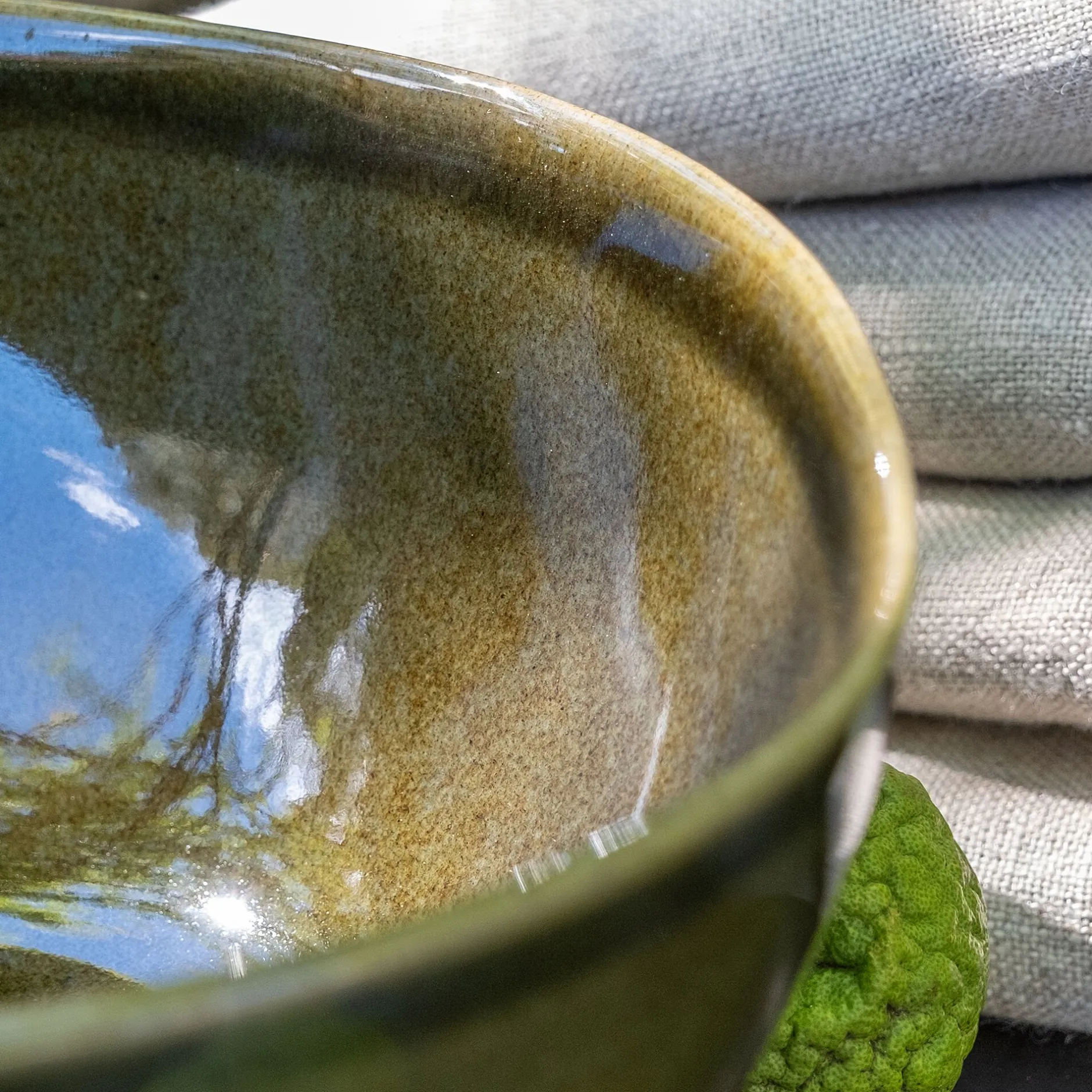 Avec son design organique et ses contrastes de matières, le bol Avocado invite à une table authentique. Sa base en grès brut, couleur terre, lui confère une touche naturelle et texturée, tandis que sa partie supérieure, lisse et brillante, dévoile une teinte vert cèdre. Un équilibre parfait entre rusticité et élégance, idéal pour savourer un petit-déjeuner réconfortant ou une soupe parfumée.
