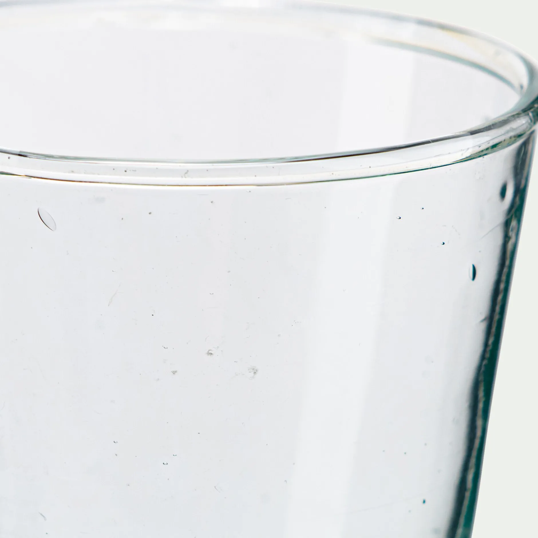 En verre recyclé, les verres Beldi sont soufflés à la bouche et coupés artisanalement à la flamme d’oxygène et de gaz. Les débris repartent à la fusion alors que les verres sont placés dans un four de recuite pendant 3h. Les verres Beldi enchantent par leur design épuré et délicat qui combine les plaisirs et raconte une histoire qui vous transporte sur les bords de la Méditerranée le temps d’un repas.