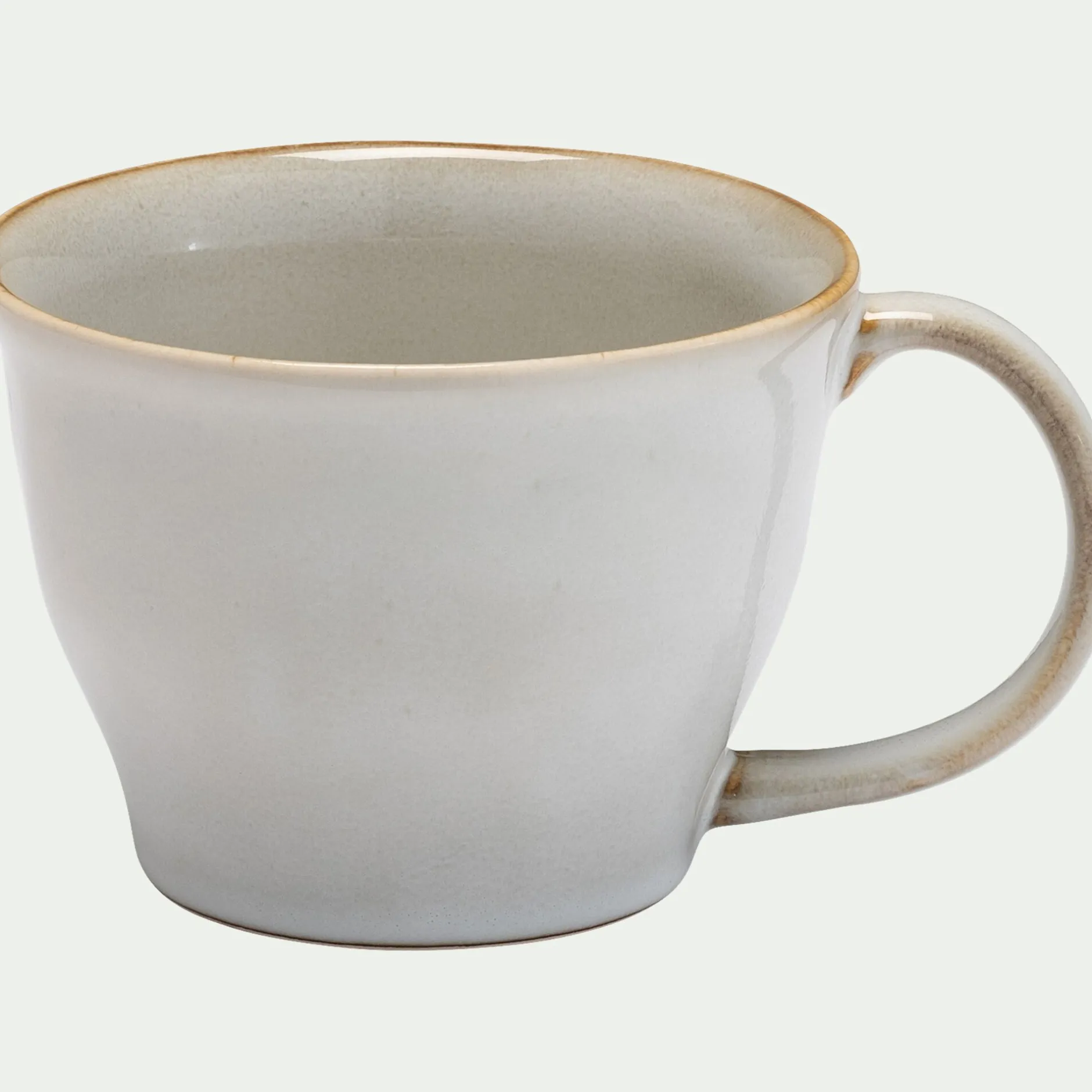 Au carrefour entre les styles, la tasse Alba surprend par son design hétéroclite. On retrouve le style contemporain dans sa matière et son coloris : un grès beige. Ce dernier s’accompagne d’une touche plus classique que l’on retrouve dans sa anse fine et ronde. Cette tasse en grès beige est ponctuée de quelques pigments bruns, des marques qui témoignent de la cuisson à très haute température de la céramique. Cette création portugaise vous permet de déguster votre boisson préférée, du café au chocolat chaud.