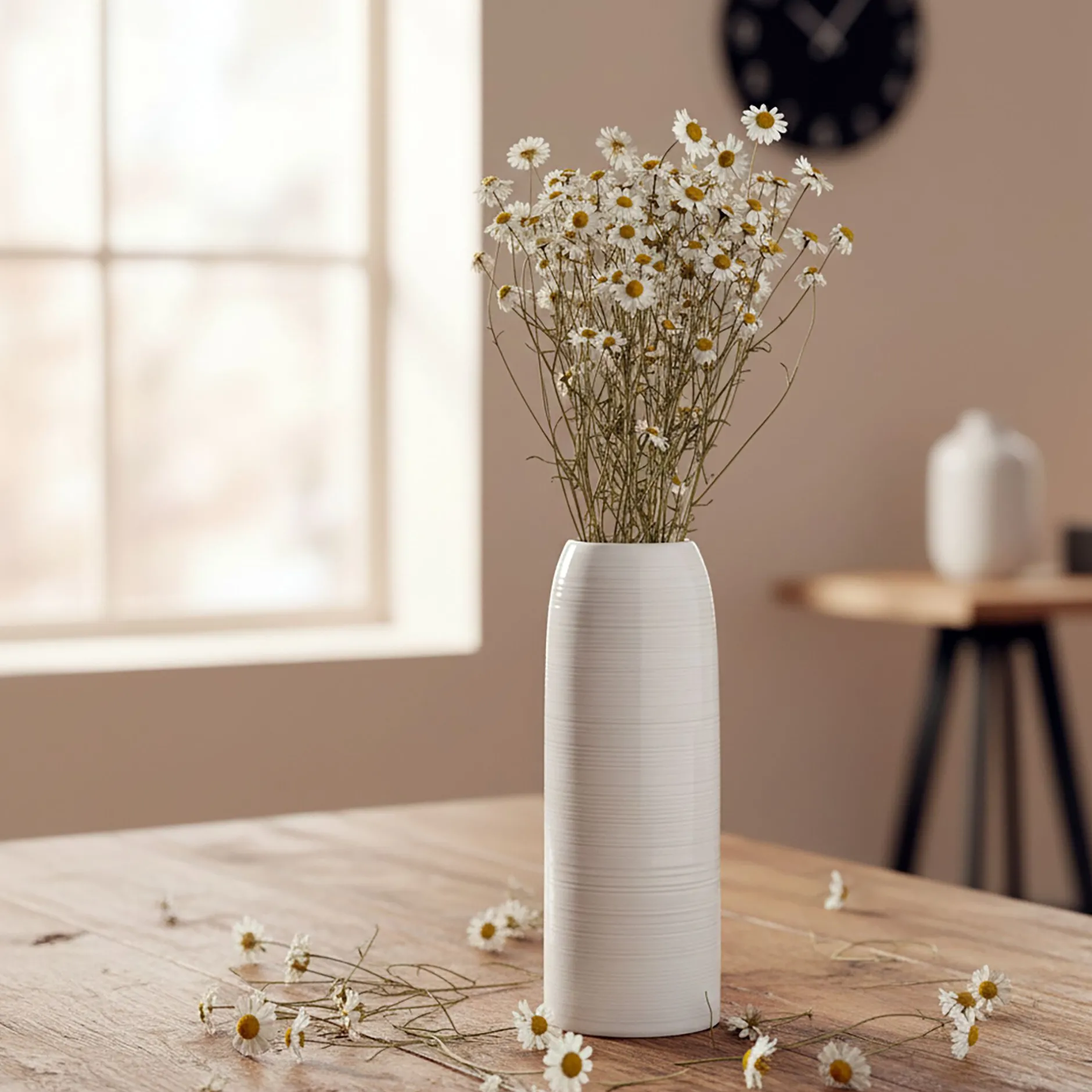 Ce vase en grès est parfait pour y disposer toutes vos composition florales. Avec sa jolie couleur blanche, il incarne la douceur et la modernité. Il donnera une touche raffinée à votre décoration. Il se distingue par la pureté de ses lignes et ses stries. Haut de 25,5 cm, il vous permet de mettre en valeur vos plus belles fleurs. Placez-y de jolies fleurs fraiches ou un bouquet de fleurs séchées pour une décoration distinguée.