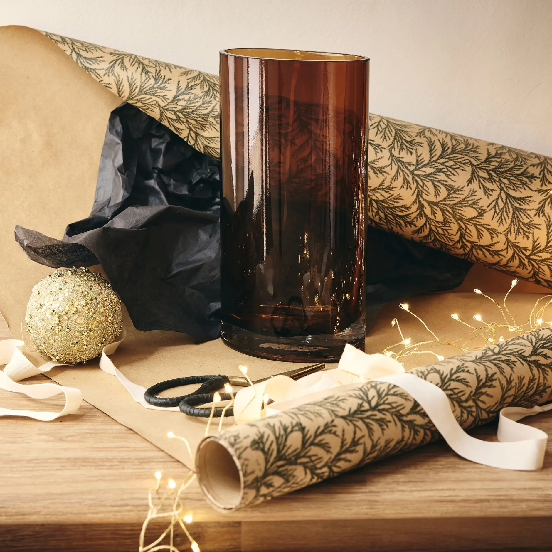 Avec sa silhouette ovale et épurée, ce vase en verre teinté joue la carte de la simplicité élégante. Son coloris brun rustrel, lumineux et chaleureux, capte la lumière et crée de subtils jeux de transparence. Parfaitement étanche, il accueille aussi bien des bouquets de fleurs fraîches que quelques tiges minimalistes. À la fois fonctionnel et décoratif, ce vase apporte une touche raffinée et colorée à l’espace, entre sobriété contemporaine et chaleur des matières teintées.