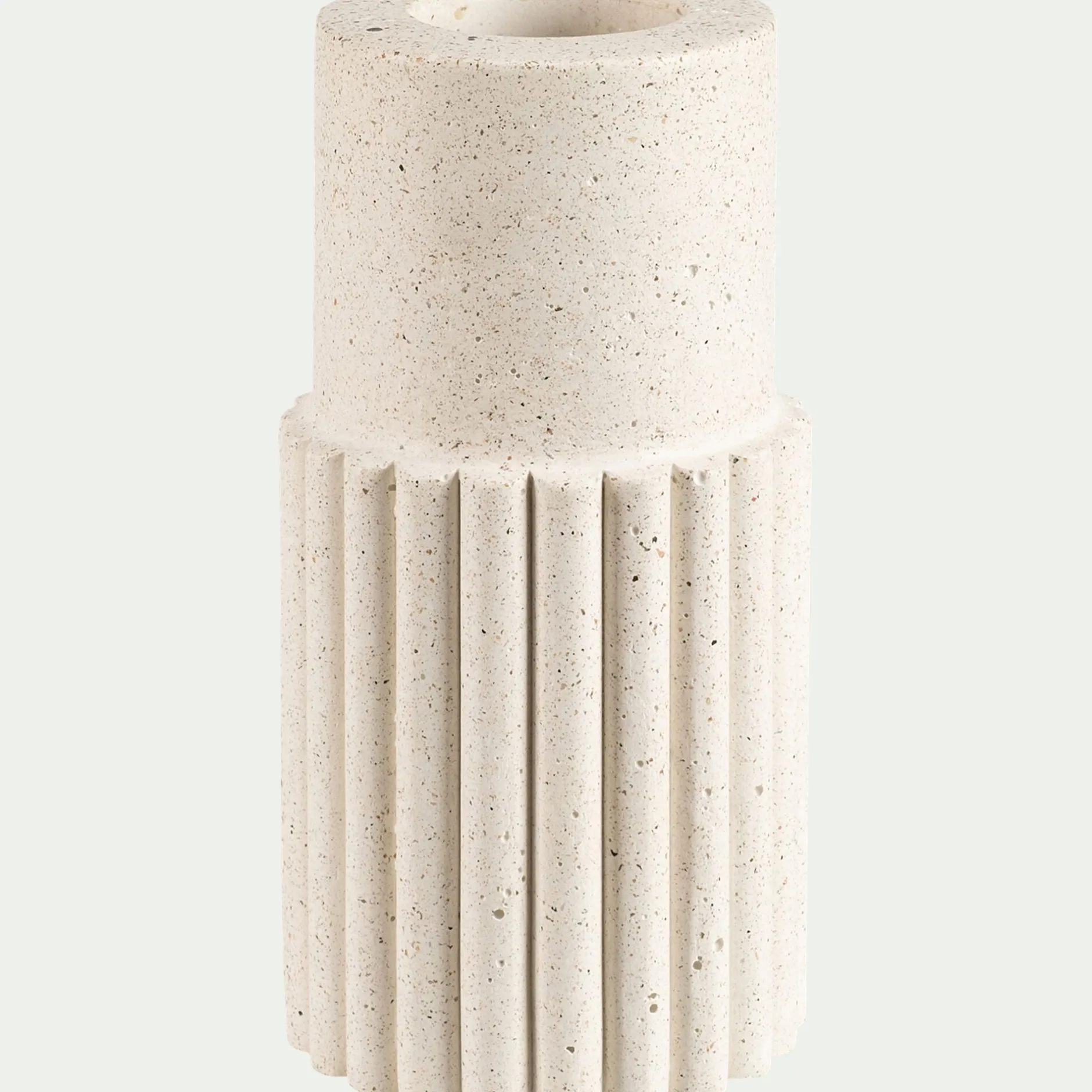 Ce vase en béton blanc célèbre la beauté des imperfections, transformant la matière brute en un bel objet déco. Inspiré du style terrazzo, il mêle avec élégance des fragments de pierre pour créer une texture unique et organique. Les détails en relief donnent du volume à ce vase et participent à un style contemporain. Parfait pour mettre en valeur un bouquet de fleurs ou simplement en tant qu’objet décoratif, ce vase apporte une touche de caractère et d’authenticité à votre intérieur.