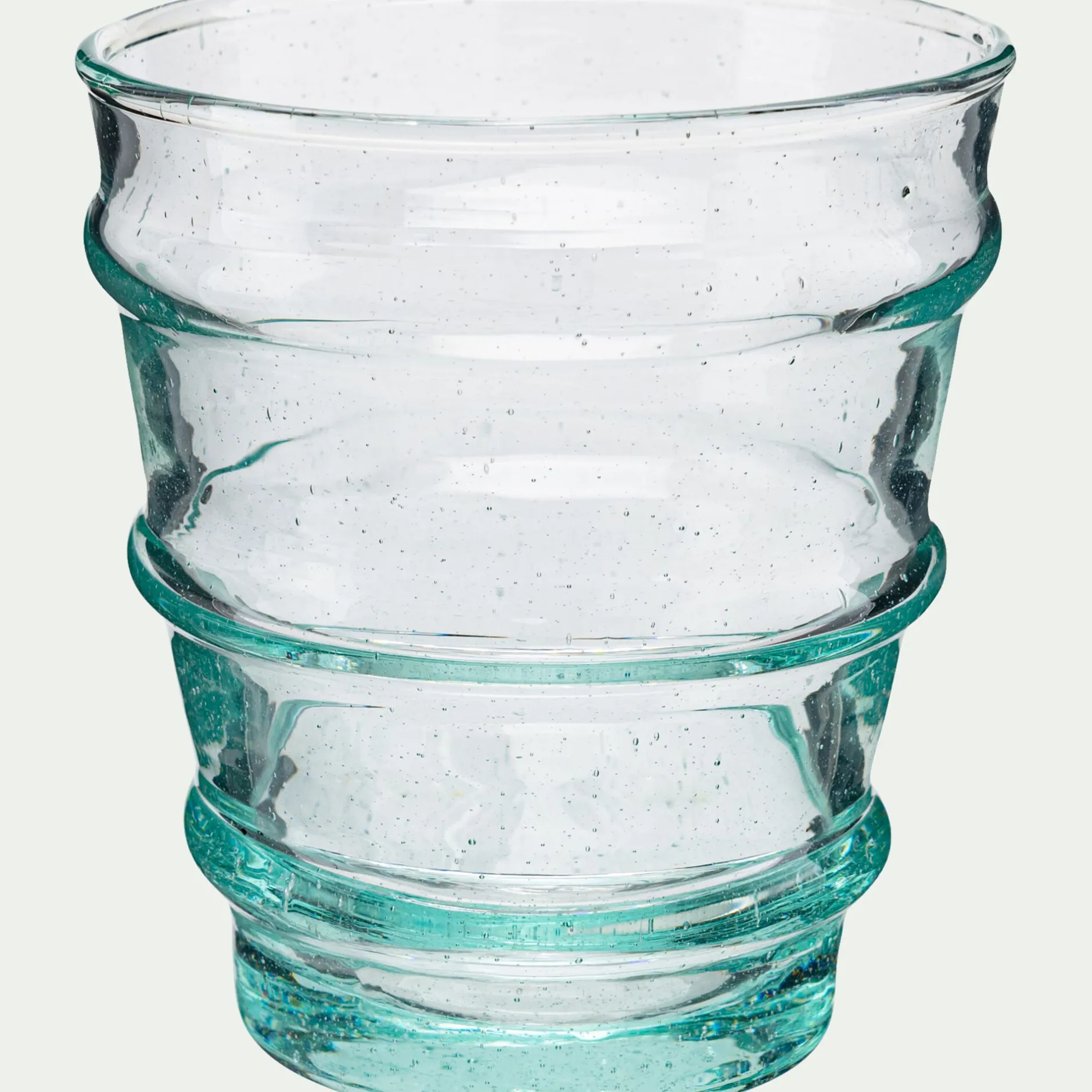 Apportez une touche authentique au dressage de votre table avec Beldi, une collection aux accents marocains fabriquée en verre recyclé. Ce gobelet de 30 cl est un petit bijou décoratif qui accompagne chacun de vos repas. Transparent, ce verre à eau s’harmonise avec élégance au reste de la vaisselle. Sa conception artisanale est le fruit d’un savoir-faire exceptionnel qui rejoint votre table avec douceur et éclat.