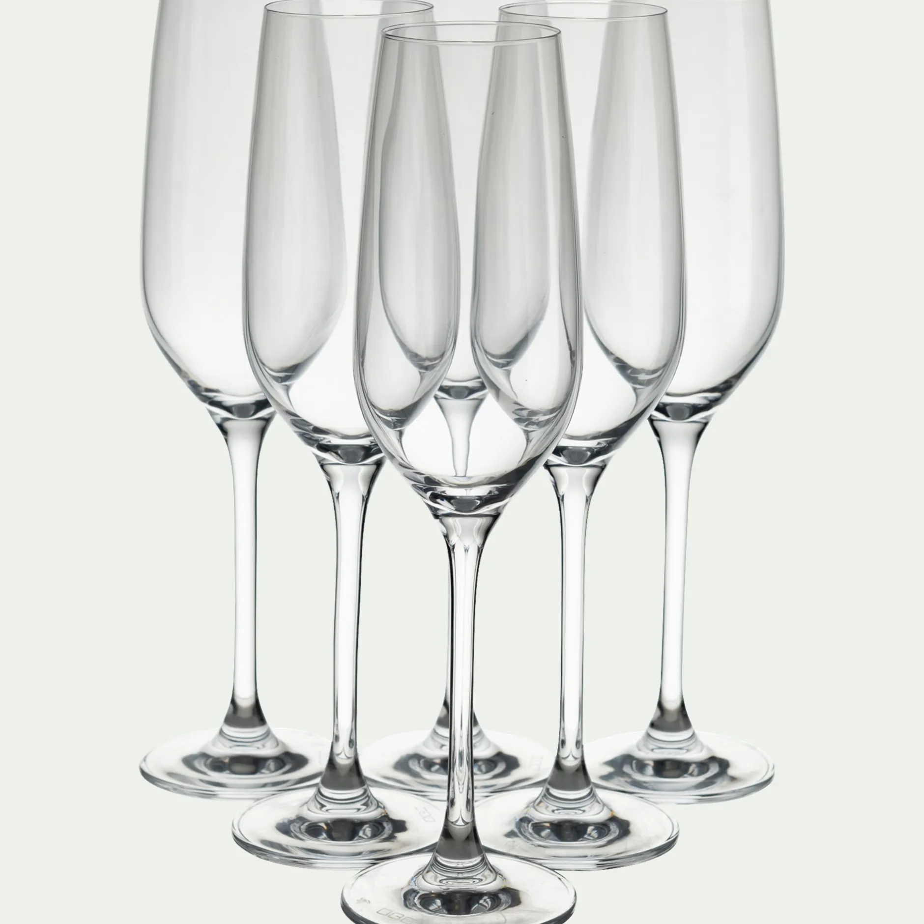 Offrez à vos instants festifs une touche d’élégance avec ce lot de 6 flûtes à champagne au design fin et délicat. Avec leur silhouette élancée et leur contenance de 19 cl, elles sont spécialement conçues pour révéler l’effervescence et la brillance du champagne. Fabriquées en verre transparent, elles subliment chaque bulle et mettent en valeur la robe du précieux breuvage. Idéales pour célébrer les grandes occasions ou savourer un moment raffiné, ces flûtes incarnent l’art de trinquer avec style et légèreté.