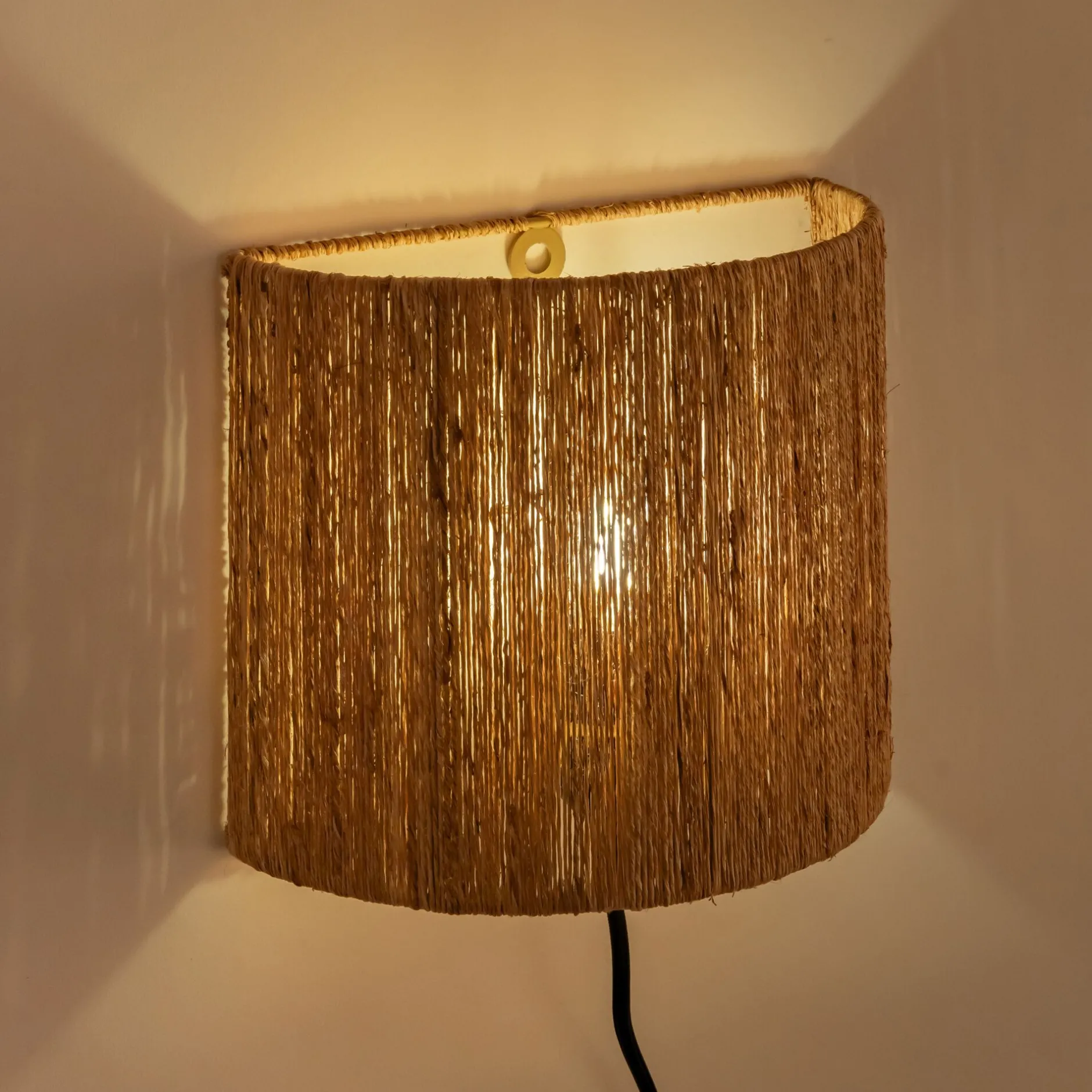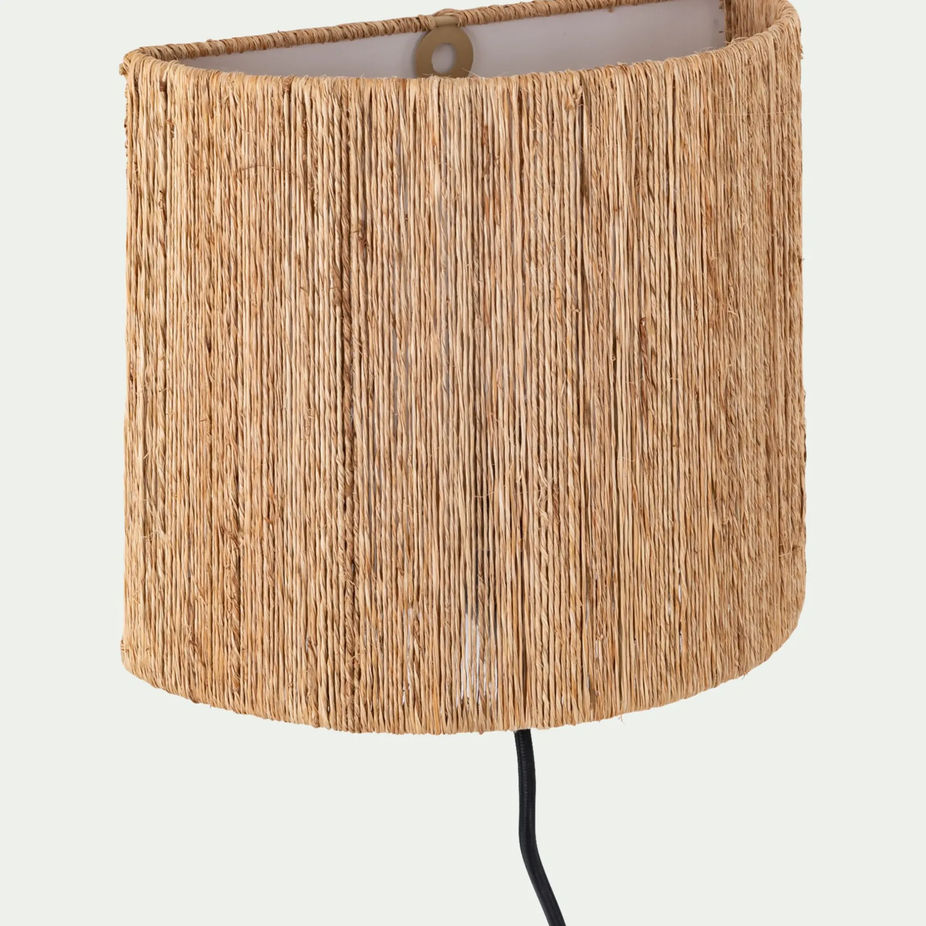 Ce joli abat-jour applique habille vos murs avec charme et élégance. Ce luminaire naturel sera la pièce maîtresse de votre pièce de vie. Cette applique non-électrifiée présente une structure en métal, délicatement soulignée par un abat-jour en jute. Les fibres naturelles sont tissées entre elles pour créer ce camaïeu de nuances dorées qui viennent illuminer votre salon ou votre chambre. Original, cet abat-jour applique en fibres naturelles participe à une atmosphère accueillante et conviviale dans votre intérieur.