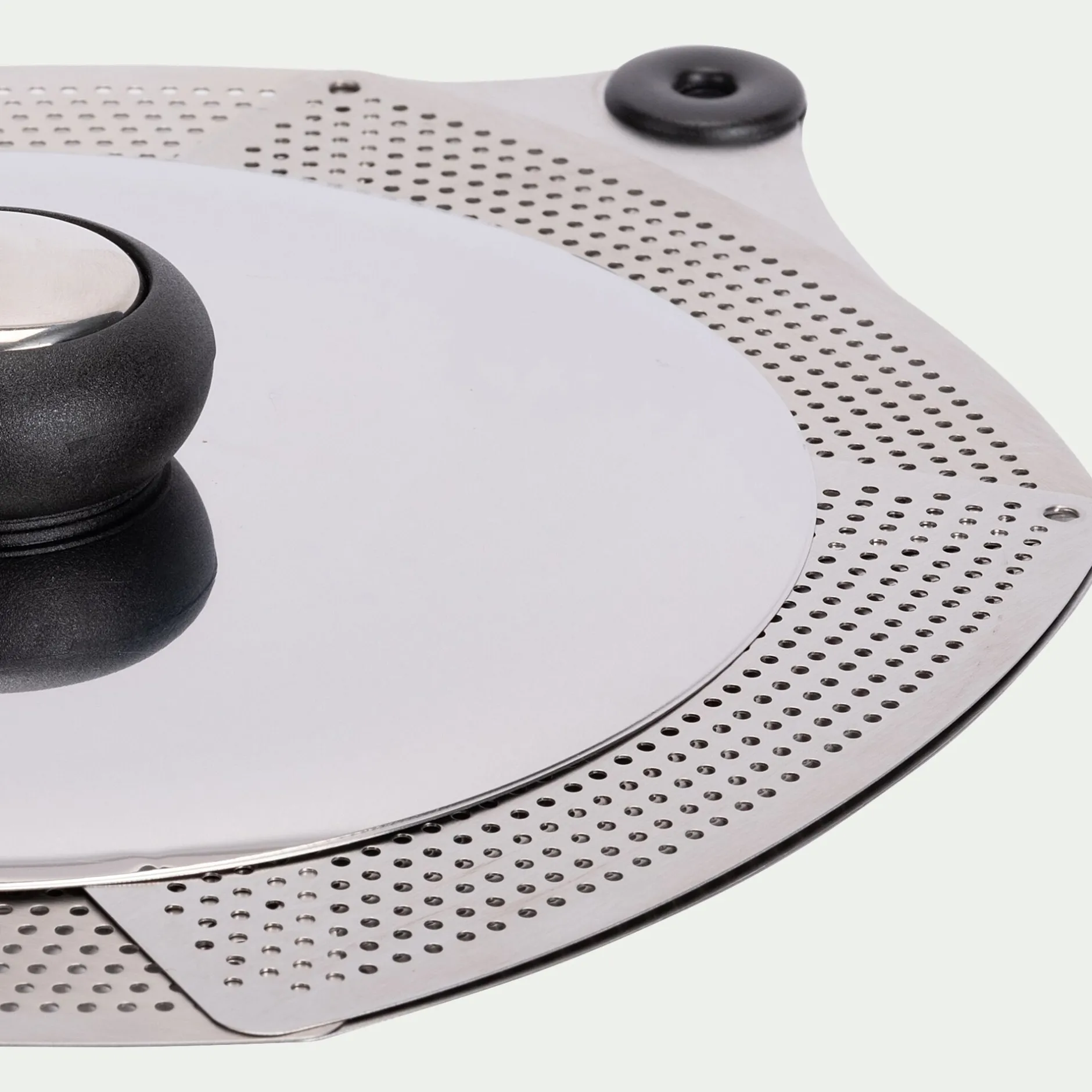 Ce couvercle anti-éclaboussures en forme d’éventail est l’allié incontournable pour cuisiner en toute propreté. Conçu en inox, il protège efficacement des projections d’huile ou de liquide chaud, tout en laissant s’échapper la vapeur pour éviter l’effet de condensation. Grâce à sa forme astucieuse et extensible, il s’adapte à une large gamme de casseroles et poêles (de 22 à 32 cm de diamètre), pour une utilisation polyvalente au quotidien. Son cadre robuste en inox résiste à la chaleur élevée, tandis que sa poignée ergonomique permet une prise en main sûre et un rangement facile. Pratique, durable et simple à entretenir, cet accessoire convient aussi bien aux cuisiniers amateurs qu’aux passionnés exigeants. Un indispensable pour une cuisine propre, sûre et bien maîtrisée.