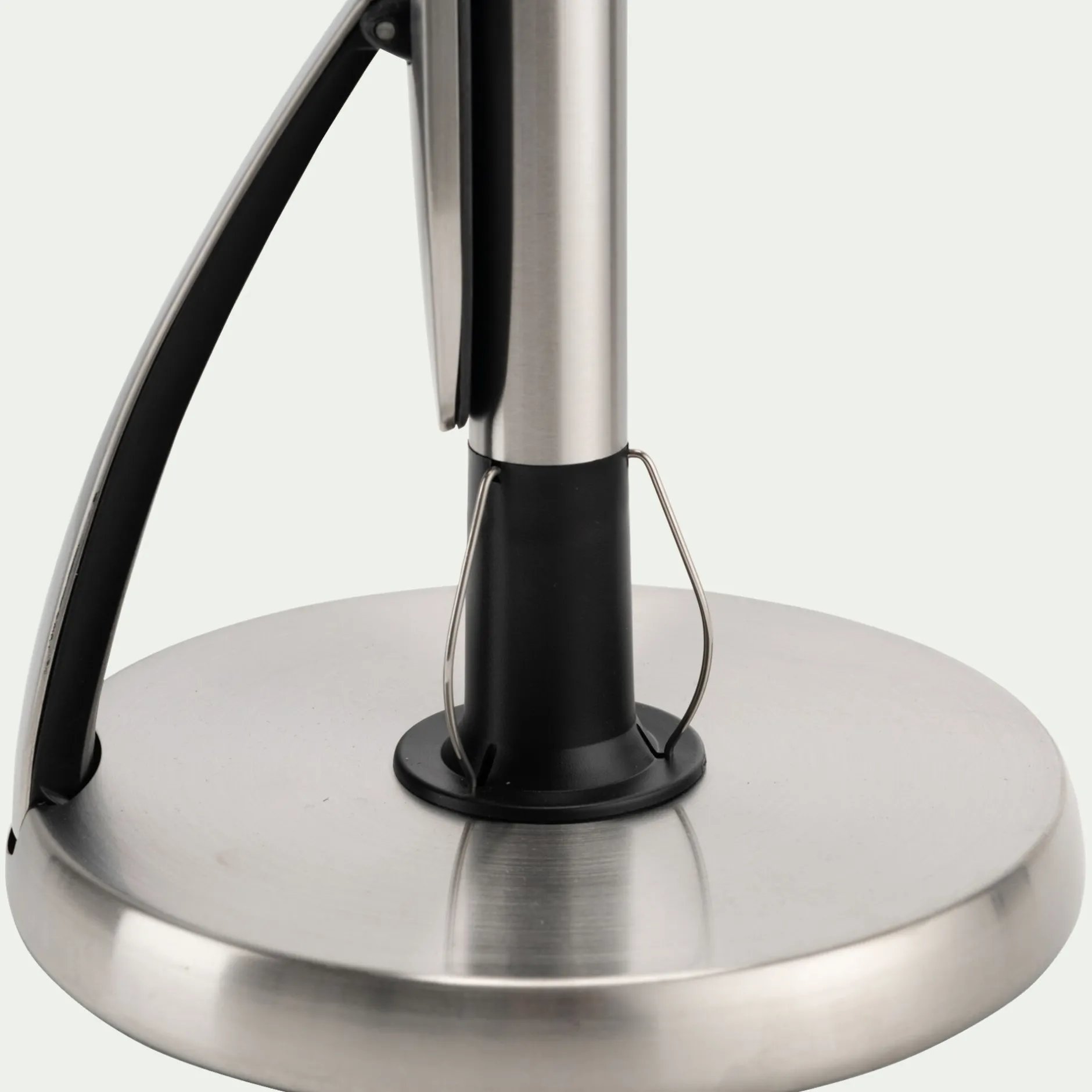Le dérouleur pour essuie-tout se rendra vite indispensable dans votre cuisine ou à table grâce à sa grande praticité. Son bras de tension maintient fermement l’essuie-tout afin qu’il ne se déroule pas, et que vous puissiez donc prendre une feuille de papier absorbant d’une seule main. Pratique, quand on cuisine et que l’on a les mains sales ou encombrées. La conception en acier inoxydable rend ce porte essuie-tout suffisamment lourd et stable, lui garantissant ainsi un équilibre parfait, même en extérieur. Sa base antidérapante ne craint pas les rayures, et en fait un accessoire durable. Le bouton situé sur le dessus, permet de porter le dérouleur de la cuisine à la table, sans salir les feuilles de papier.