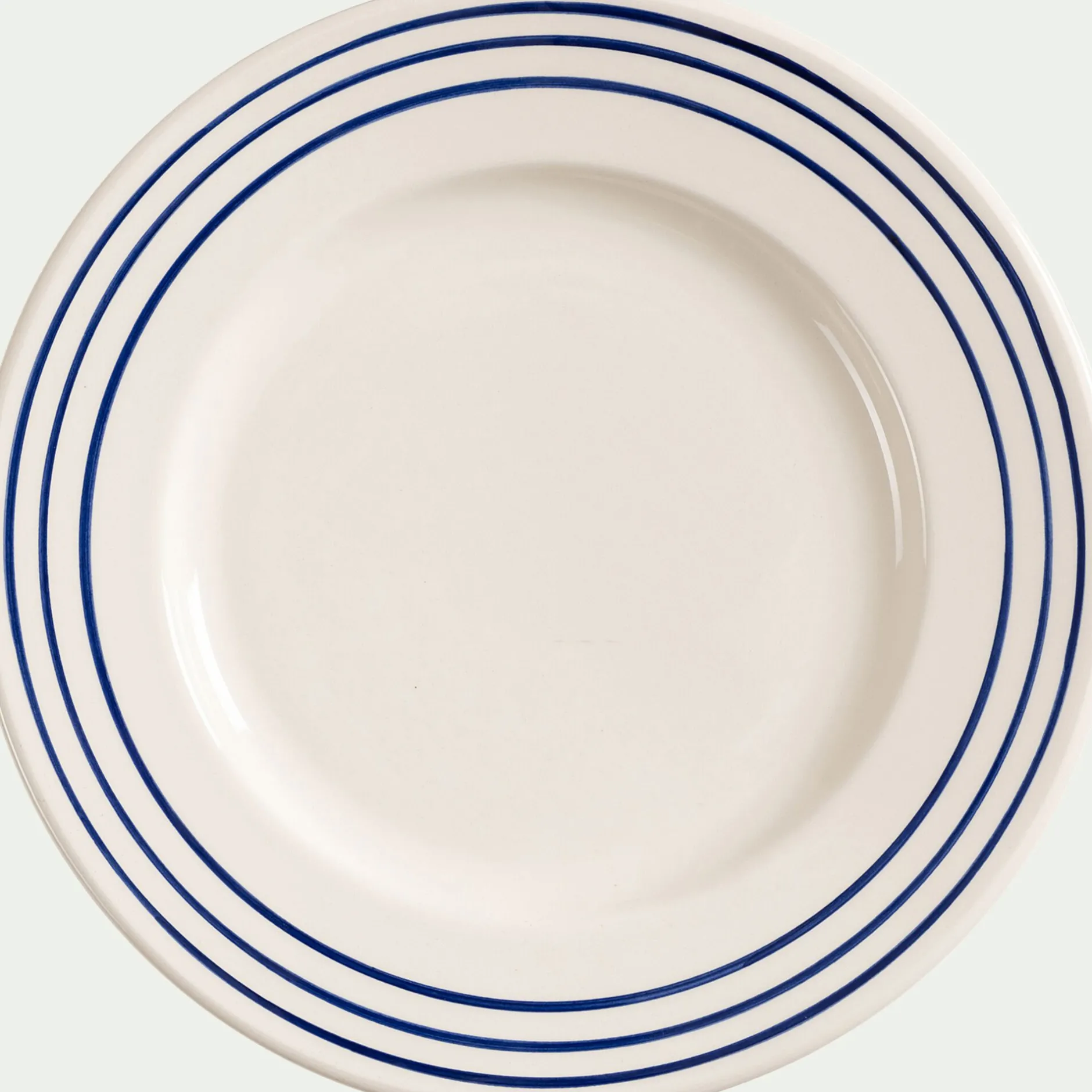 Cette assiette à dessert allie simplicité et raffinement. Sa silhouette douce et subtilement organique est sublimée par un délicat liseré bleu, une teinte épurée qui met en valeur les couleurs, les textures et les saveurs. Confectionnée en faïence, cette assiette blanche se distingue par son élégance et sa robustesse. Idéale pour présenter et servir vos créations sucrées, elle apporte une touche naturelle qui magnifie chacun de vos desserts.