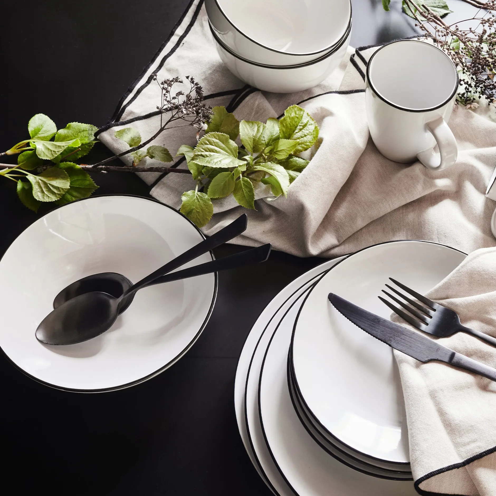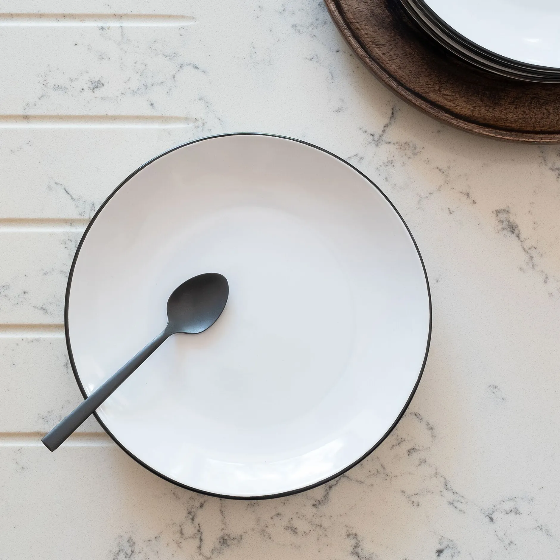 Assiette*alinea Assiette à dessert en grès avec liserai noir D19,2cm – Blanc