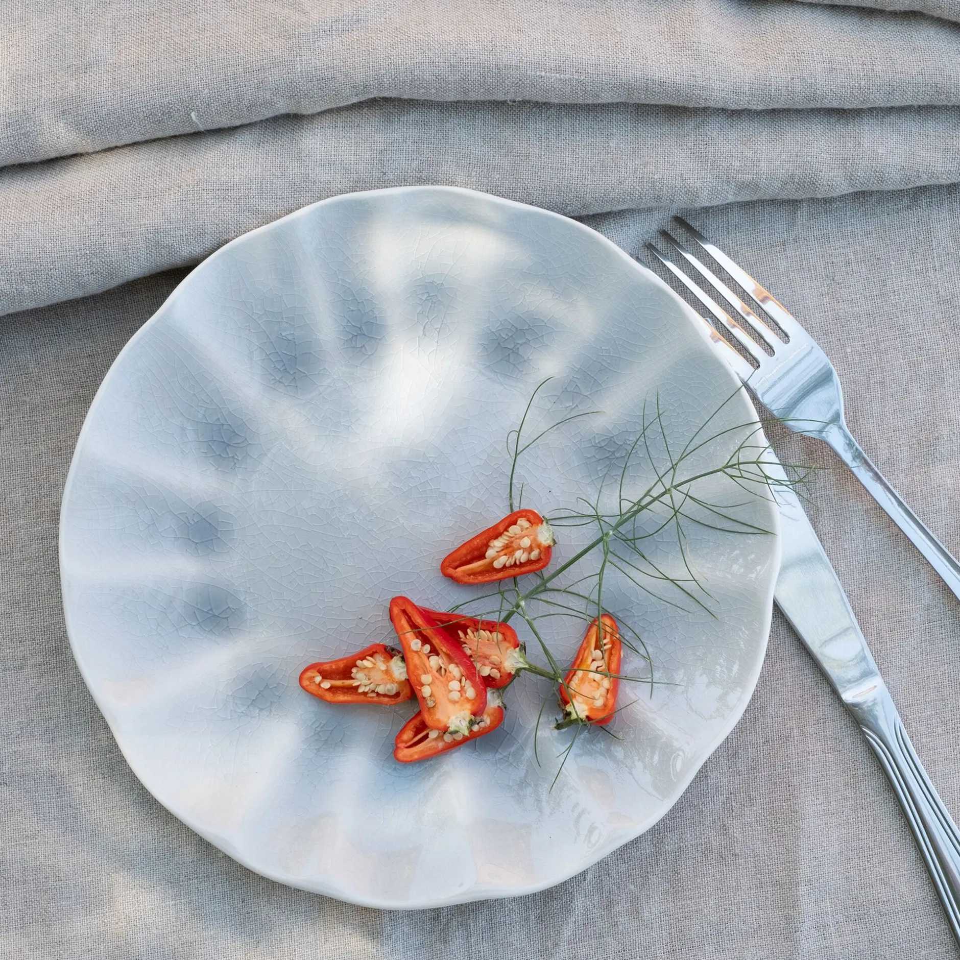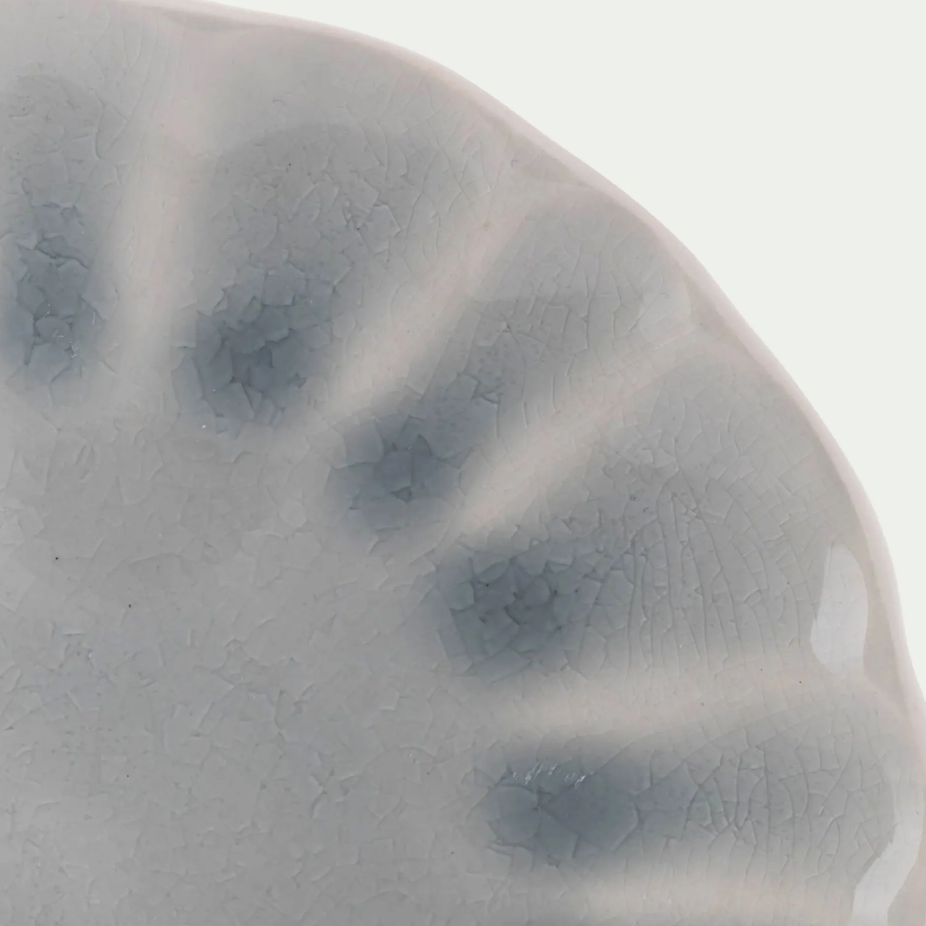 L’assiette à dessert Giulia séduit par sa délicatesse et ses nuances poétiques. Confectionnée en grès bleu, elle présente une bordure légèrement ondulée, comme une corolle de fleur, qui fait subtilement varier les teintes. D’un diamètre de 21 cm, cette petite assiette est idéale pour les desserts, les entrées ou une petite pause gourmande. Un joli mélange d’élégance et de naturel pour embellir chaque instant à table.