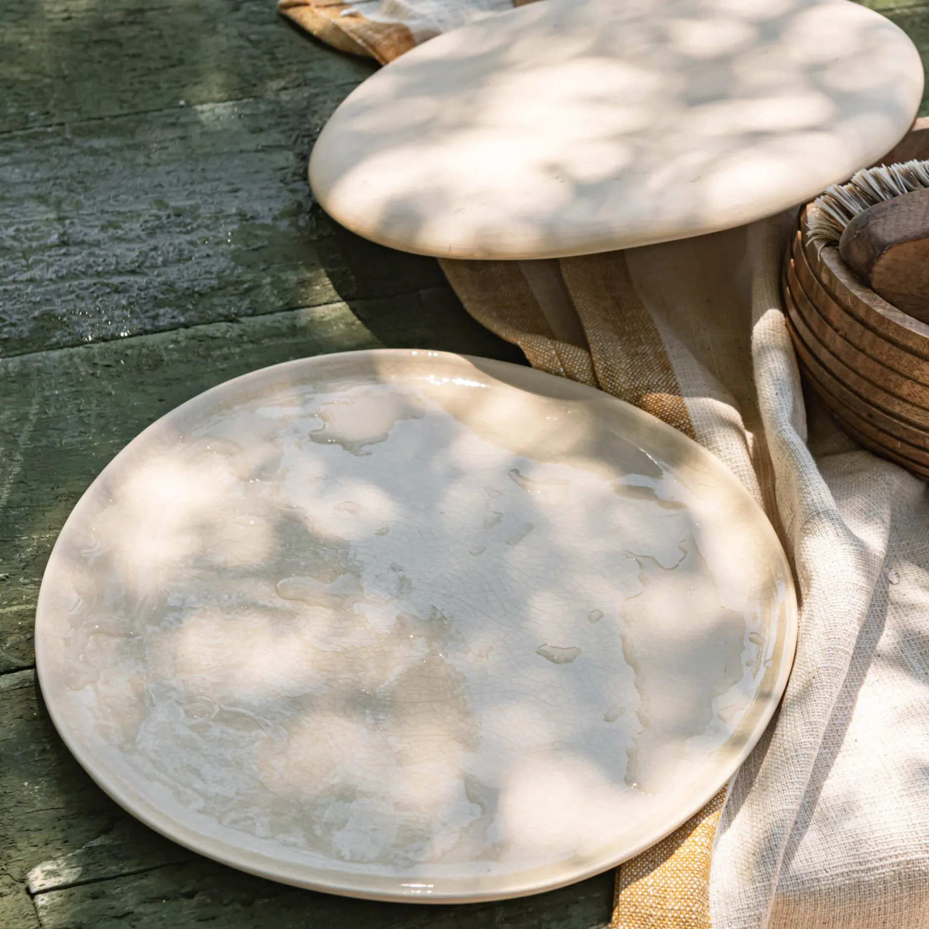 L’assiette plate Houm revisite l’art de la table avec une silhouette originale et raffinée. Avec ses 27 cm de diamètre et ses bords légèrement hauts, elle est idéale pour servir vos plats avec charme. Sa légère inclinaison lui donne une allure singulière tout en facilitant la dégustation. Cette assiette plate en grès arbore notre coloris blanc ventoux, avec un intérieur en émail craquelé et un extérieur brut au toucher minéral. Une pièce charmante, qui allie praticité et élégance naturelle.