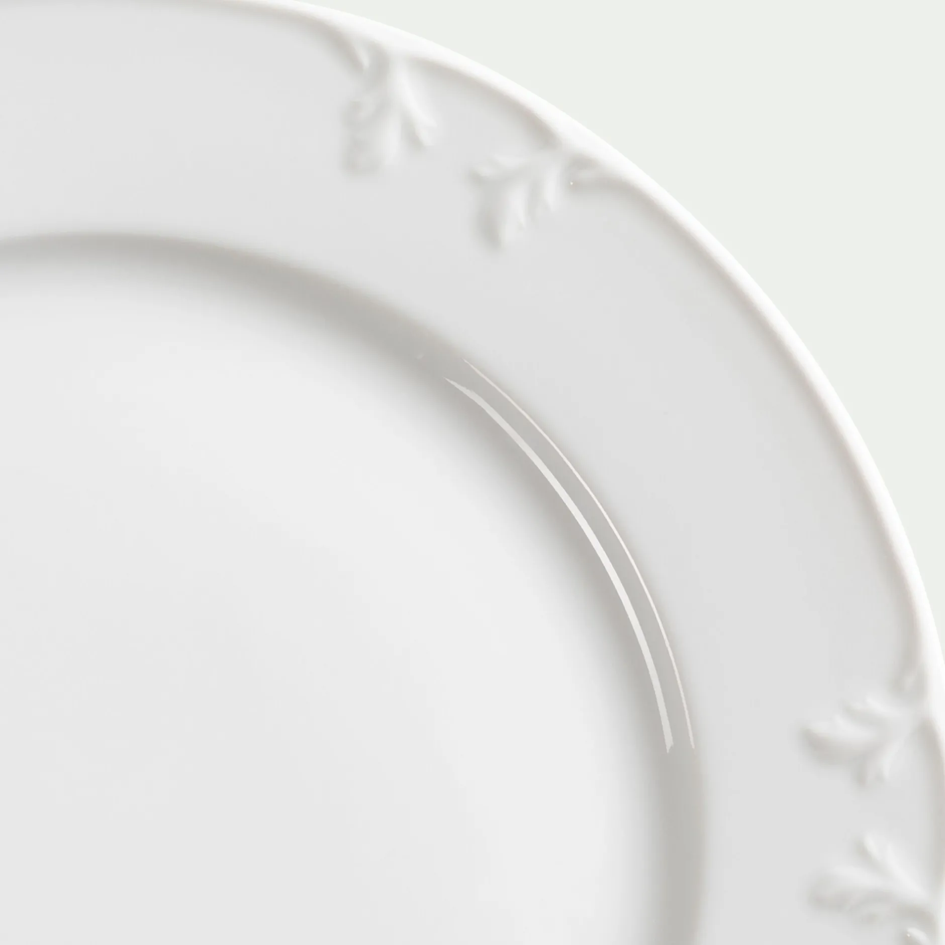 Ces assiettes plates sont parfaites pour présenter vos mets les plus délicieux. Que ce soit pour un repas raffiné ou vos dîners et déjeuners quotidiens, elles apporteront une touche d’élégance à votre dressage de table. Leur design délicat, arborant un joli motif discret, et leur couleur blanche, permet de les assortir à tous les styles de déco. Pour une table harmonieuse, combinez ces assiettes avec les autres pièces de la gamme Acanthe, une collection de vaisselle fabriquée en France.