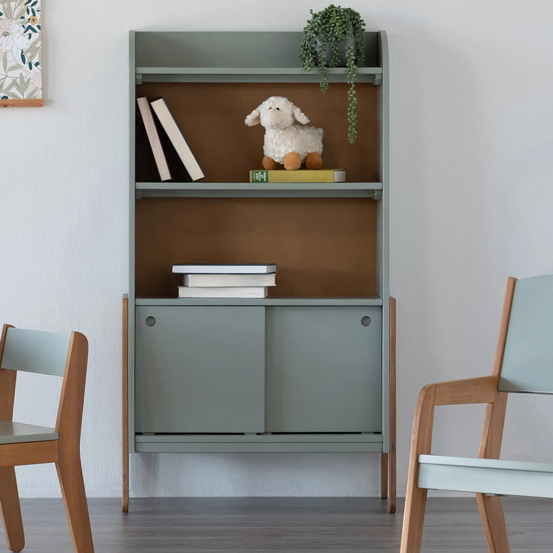 Spécialement conçue pour les enfants, la bibliothèque Raphaël permet de faire de l’ordre dans la chambre à coucher de votre bambin. Ici dans un beau coloris vert olivier, elle apportera une note naturelle de caractère à la décoration de la pièce.