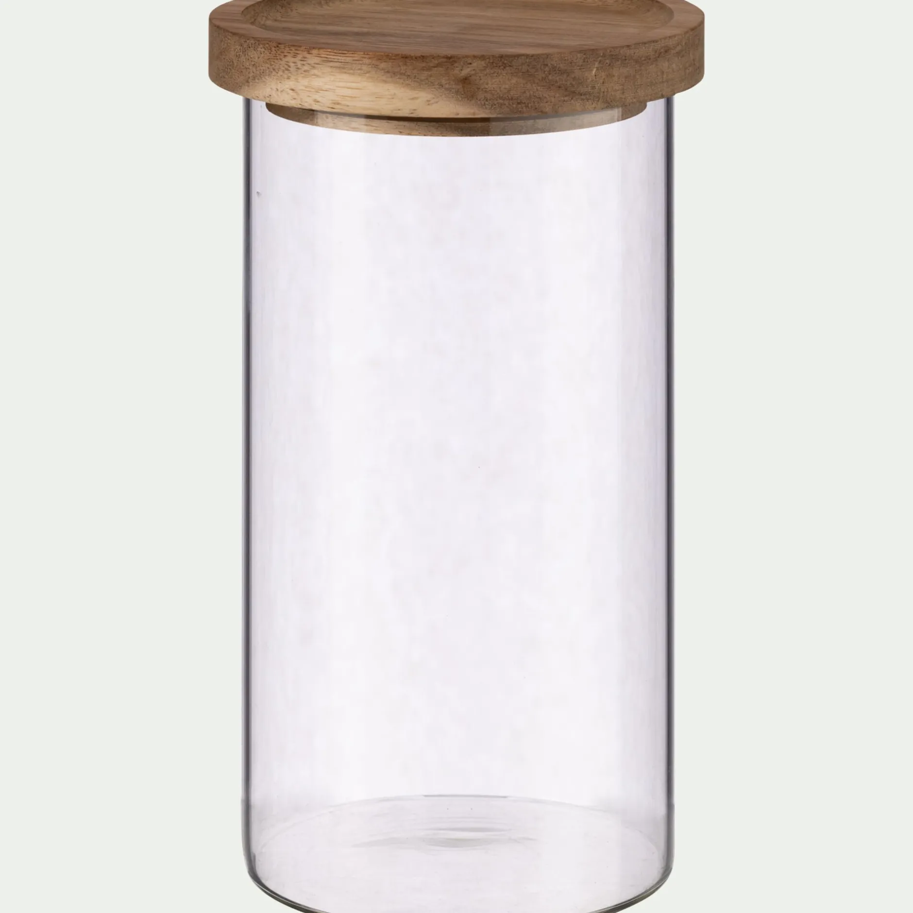 Pour organiser et optimiser votre cuisine, rien de tel que des bocaux transparents. Le bocal Ronda arbore un design simple, cylindrique, pour un rendu contemporain. Il est confectionné en verre, un matériau résistant et hygiénique, avec un couvercle en bois d’acacia. Transparent, ce bocal 1L permet de voir ce que l’on range à l’intérieur : pâtes, noix, riz, lentilles… Et autres mets à conserver avant dégustation.