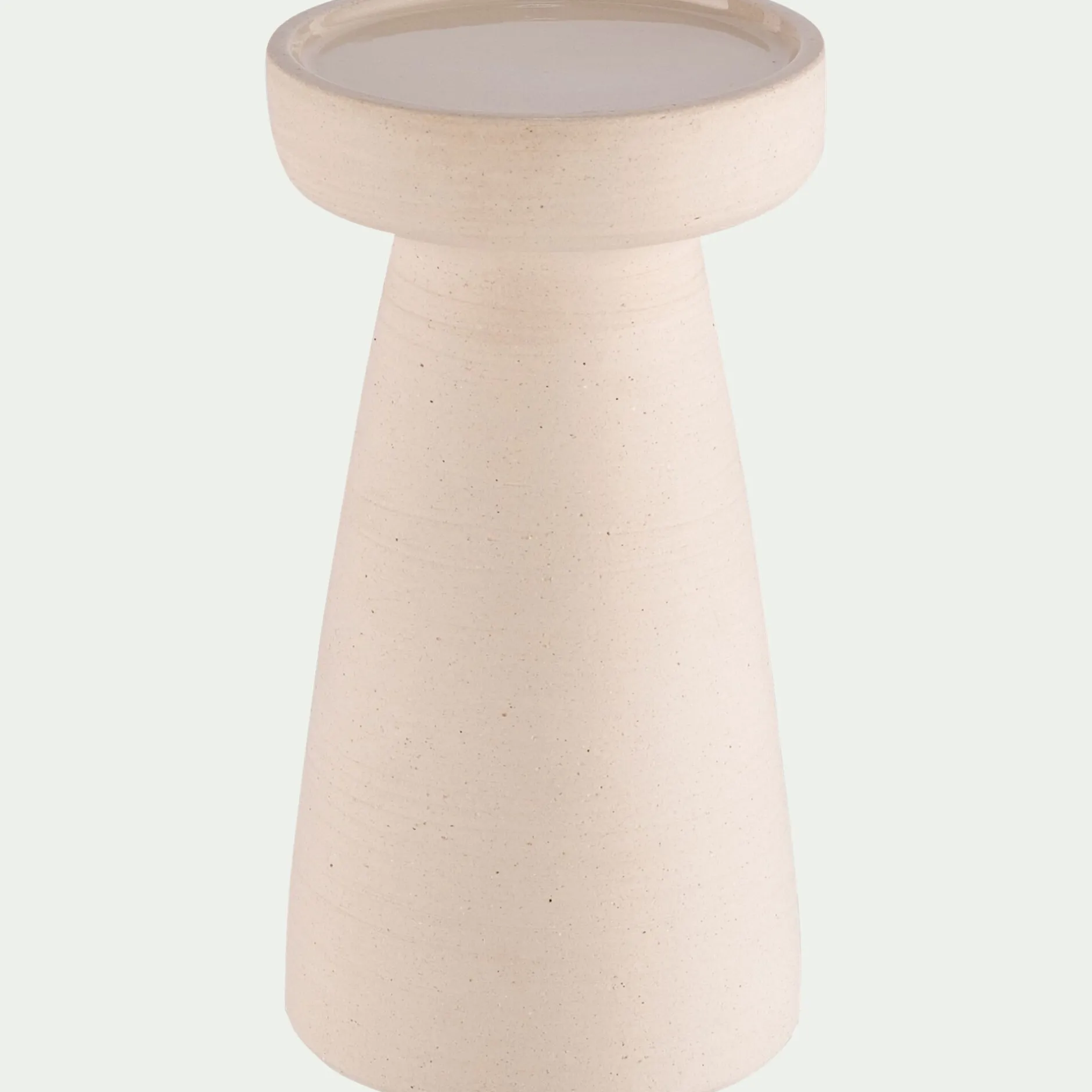 Ce bougeoir en grès beige mise sur une silhouette épurée et une matière brute pour attirer les regards. Son large pied cylindrique lui donne une belle présence, tandis que son socle supérieur accueille une bougie jusqu’à 10,5 cm de diamètre. Un objet décoratif à part entière, à disposer seul ou en duo pour créer une ambiance douce et chaleureuse.