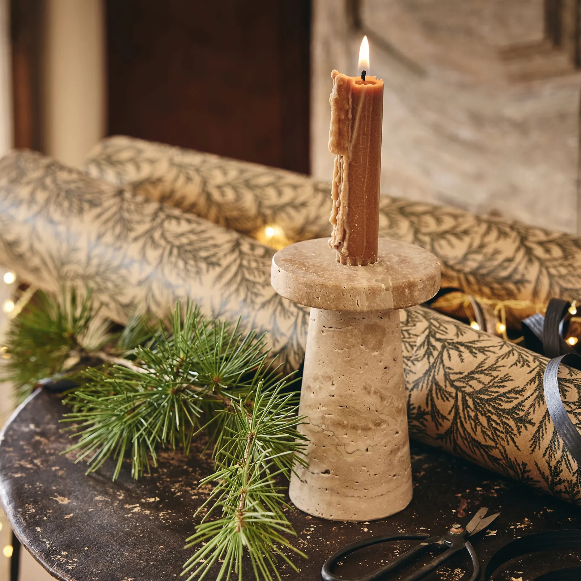 Fabriqué en travertin, une pierre calcaire naturelle pleine de caractère, le bougeoir Gournay incarne l’authenticité. Sa taille discrète met parfaitement en valeur une bougie chandelle, ajoutant une touche cosy et chaleureuse à vos soirées. Un objet déco raffiné, idéal pour sublimer votre intérieur avec élégance.