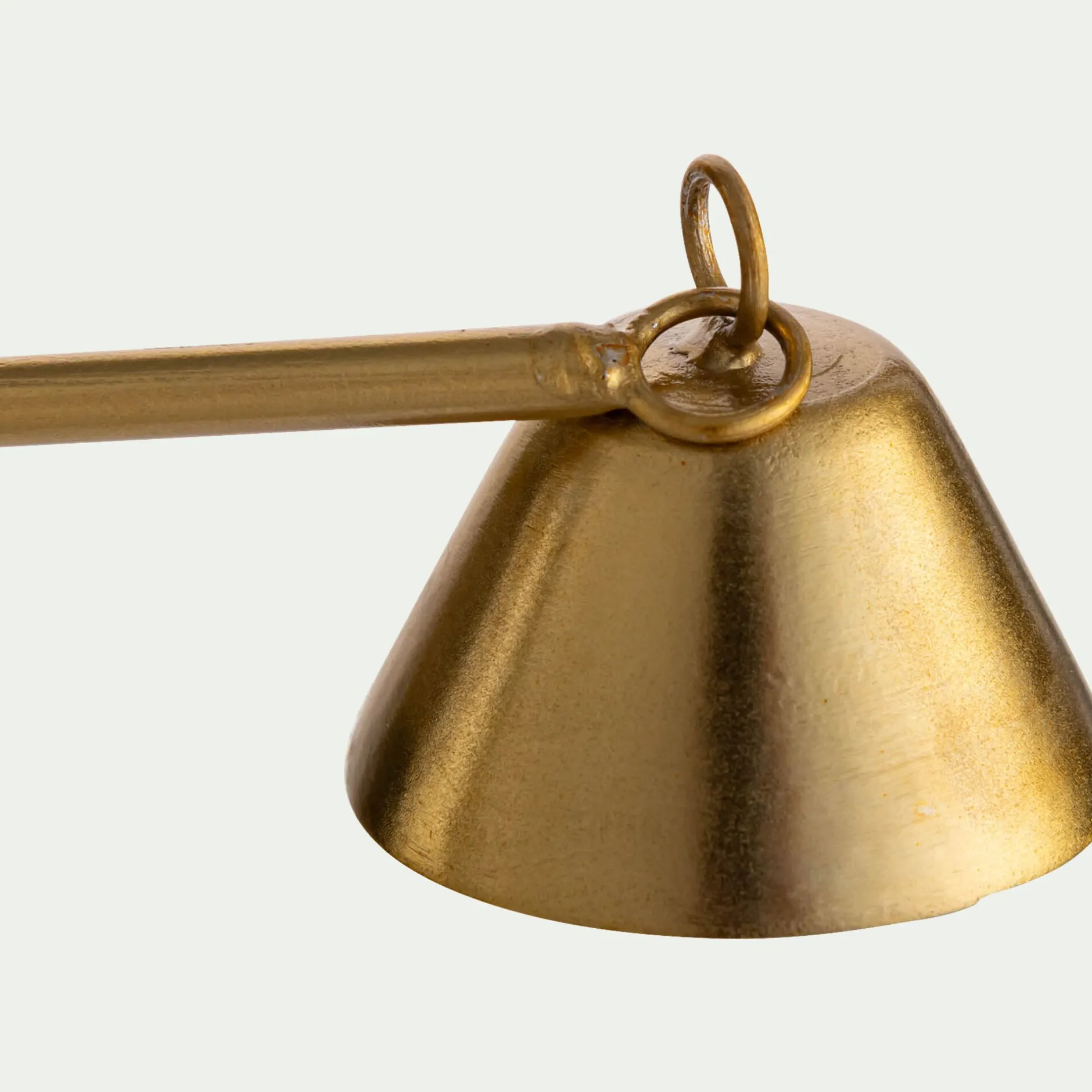 Pour prendre soin de vos bougies préférées, adoptez cet éteignoir Crau, accessoire pratique et élégant. Sa longue poignée en métal doré permet d’atteindre la mèche sans se brûler. La cloche, quant à elle, étouffe la flamme en toute sécurité, sans fumée ni odeur, et évite les éclaboussures de cire. En préservant la mèche, vous assurez une meilleure combustion et prolongez la durée de vie de votre bougie. Son design sobre et raffiné en fait également un bel objet de décoration, qui se glisse facilement près de vos bougeoirs.