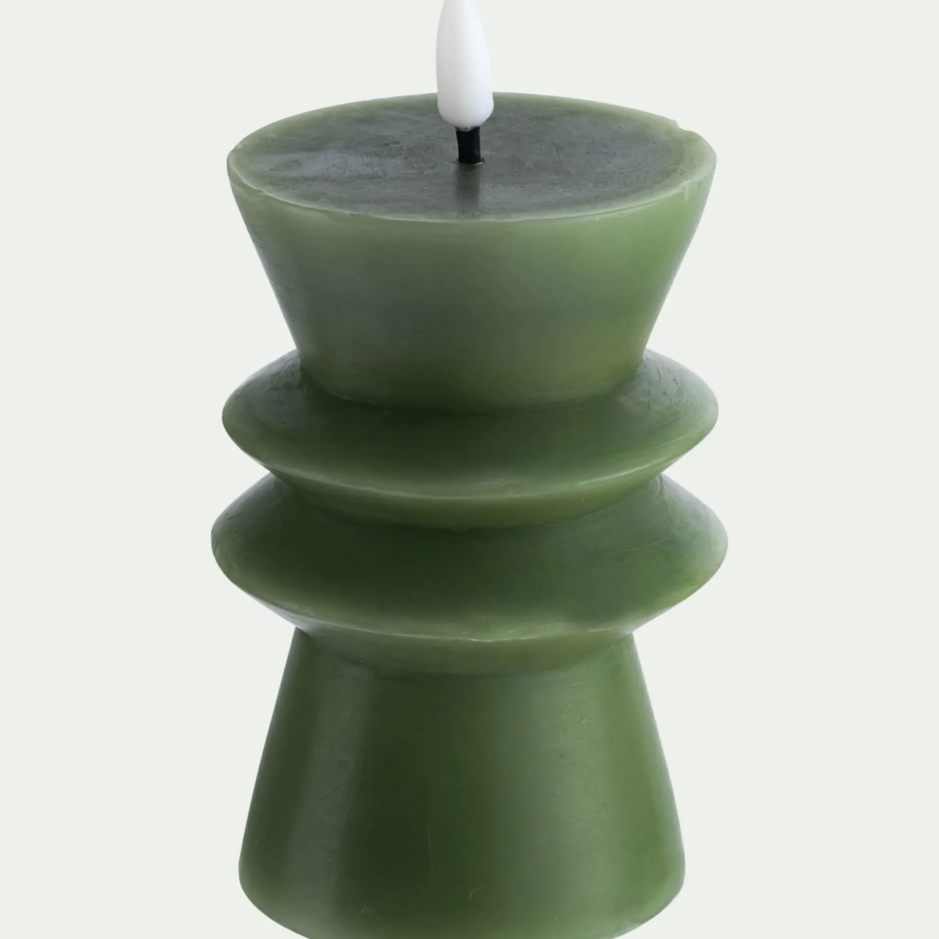 La bougie à LED Naya associe authenticité et praticité. Confectionnée en véritable cire de paraffine, elle affiche une silhouette contemporaine teintée en vert, élégante et moderne. Une petite ampoule en forme de flamme trône au sommet et diffuse une lumière blanc chaud, douce et apaisante. Fonctionnant avec 2 piles AA (non incluses), elle s’allume grâce à un interrupteur discret placé sous la bougie. Pour plus de confort, son minuteur intégré l’éteint automatiquement après 6 heures d’utilisation continue. Un objet déco qui crée une atmosphère chaleureuse sans contrainte.