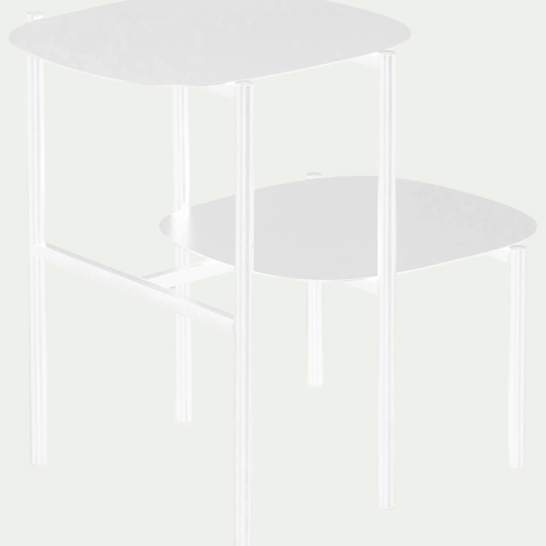 Ce bout de canapé tire son originalité de sa forme. En effet, cette petite table présente deux plateaux ovales à deux hauteurs différentes. L’un est très bas, à environ 25 cm du sol, alors que le second plateau le surplombe à 50 cm du sol. Cette table double s’installe dans le salon, près du canapé. Elle accueille vos livres, vos télécommandes ainsi que les autres accessoires du salon. Ce bout de canapé en métal arbore un coloris blanc, brillant qui s’accorde à toutes les couleurs de canapé. Une petit meuble lumineux qui habille la pièce.