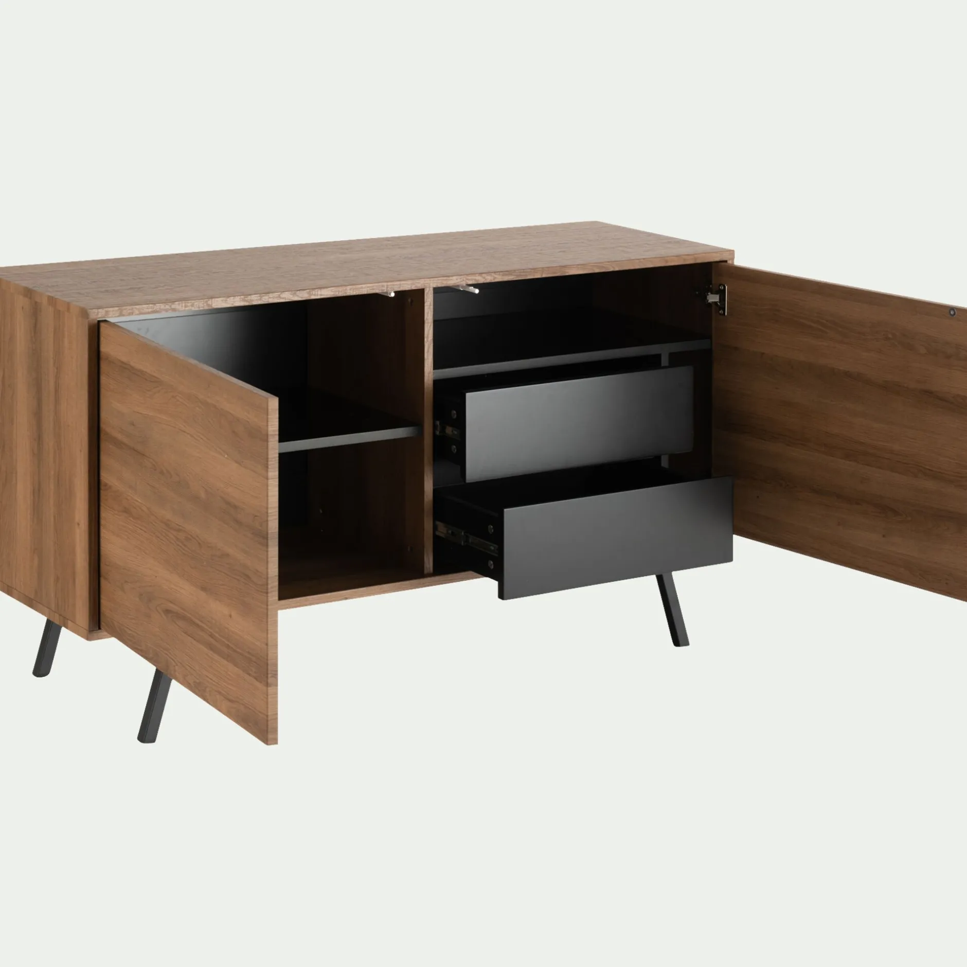 Structure en panneau de fibres de moyenne densité, revêtement papier 3d. Piétement en acier finition peinture epoxy noire