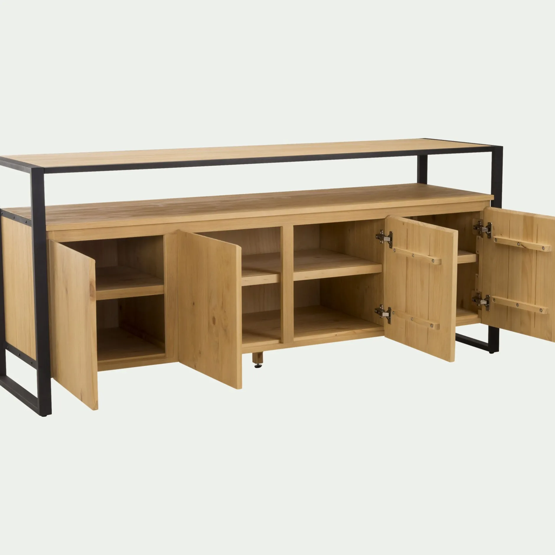 Ce joli buffet, qui tire son nom d’un quartier marseillais, réussit à la perfection l’alliance entre la robustesse du métal et la chaleur du pin massif. Ses 4 portes renferment 6 compartiments qui pourront accueillir vaisselle et verres. Le mélange de métal et de bois donne un style atelier à son ensemble, un meuble adapté à une atmosphère inspirée par les matières brutes et des teintes chaleureuses.