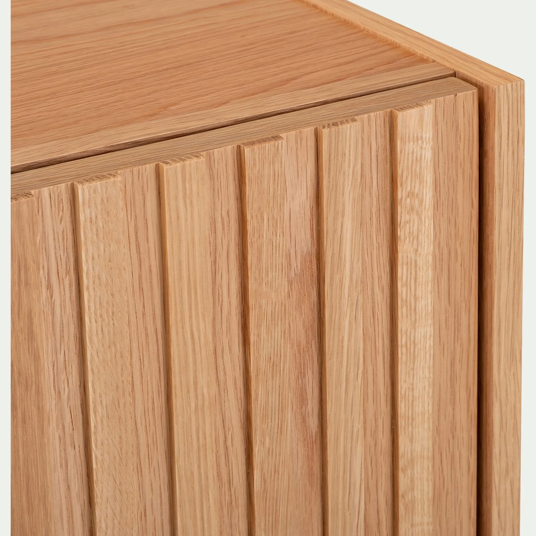 Le buffet Feve se joue des codes établis. Son mélange entre style urbain et authentique, mêlant graphisme et modularité en fait un meuble audacieux. Le placage chêne de sa structure lui donne un aspect chaleureux et authentique. Quatre portes en bois battantes laissent apparaître de spacieux rangements dans lesquels vous pourrez disposer vos livres, vos appareils électroniques et autres objets du quotidien. Un meuble de salon au design épuré qui s’intégrera dans un intérieur où les matières nobles et naturelles ont la part belle.
