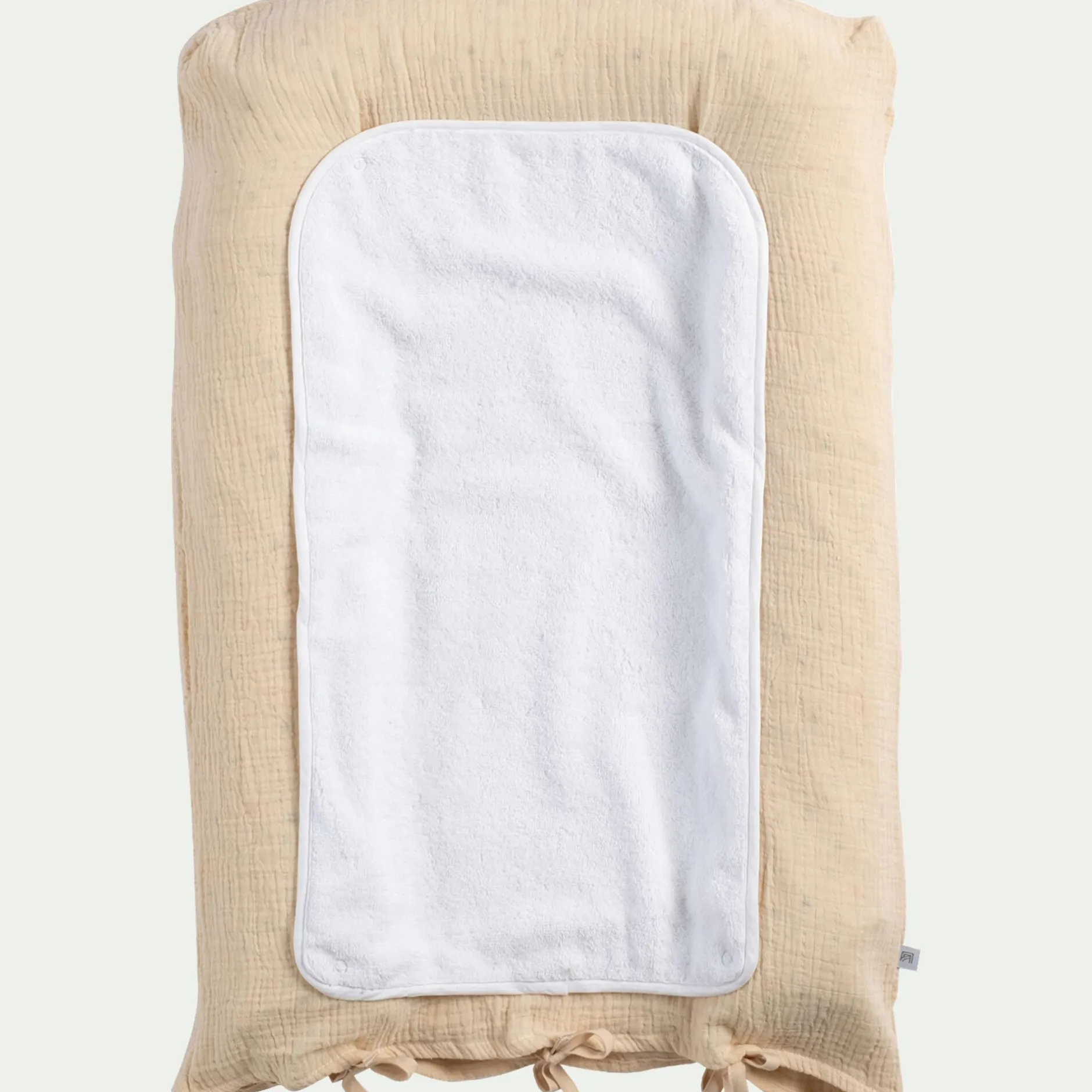 Housse de matelas en gaze de coton bio, avec 2 serviettes de protection blanche.