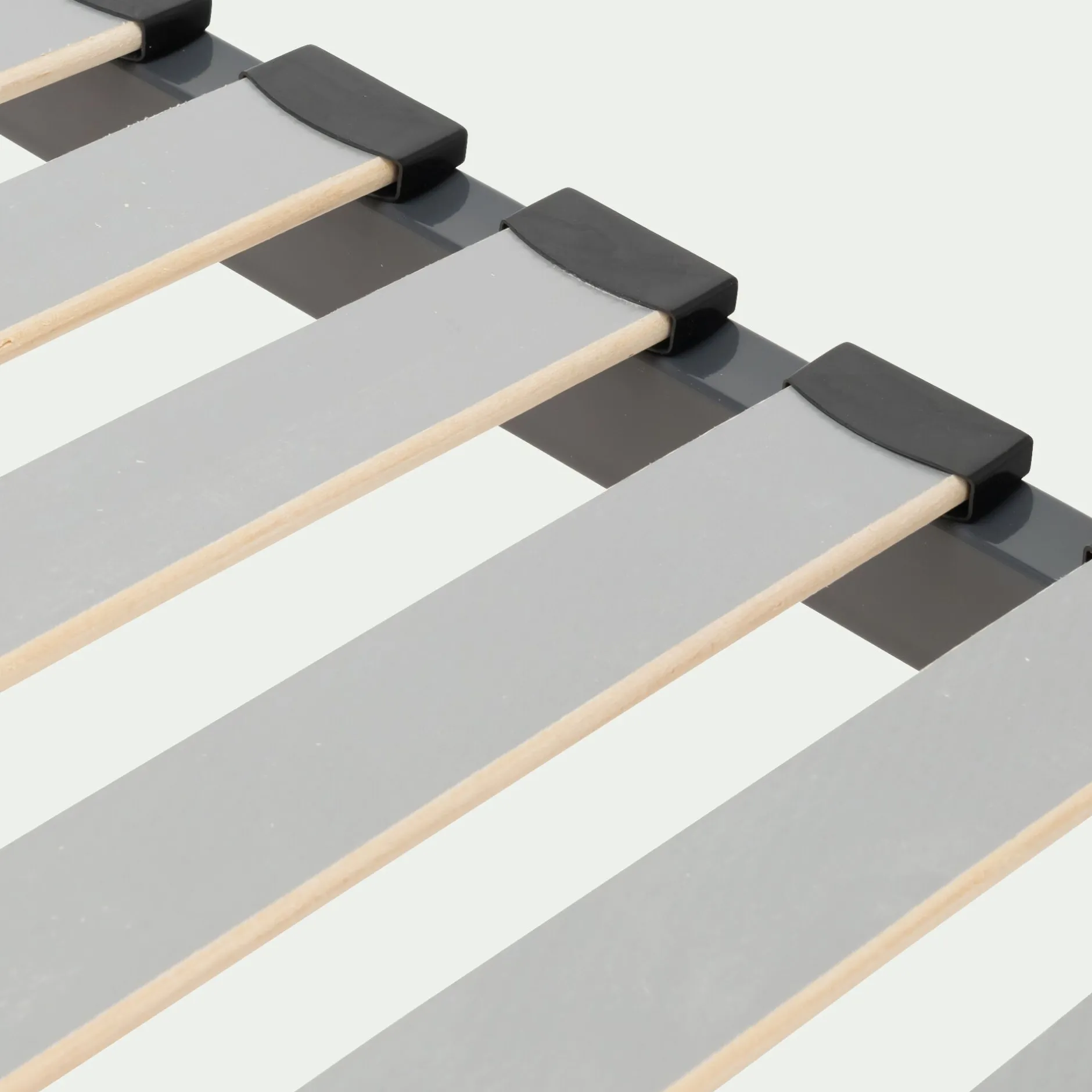 Pour venir compléter votre literie, optez pour ce cadre à lattes 140x190cm en kit. Facile a transporter et à monter, un pied central de soutien vous est fourni. Il se compose de plusieurs lattes multiplis en bois et d’une structure en métal. Il offre un soutien maximal à votre couchage et un confort supplémentaire à votre matelas. Ainsi, vous allez passer de belles et douces nuits de sommeil. Il est disponible en plusieurs tailles.