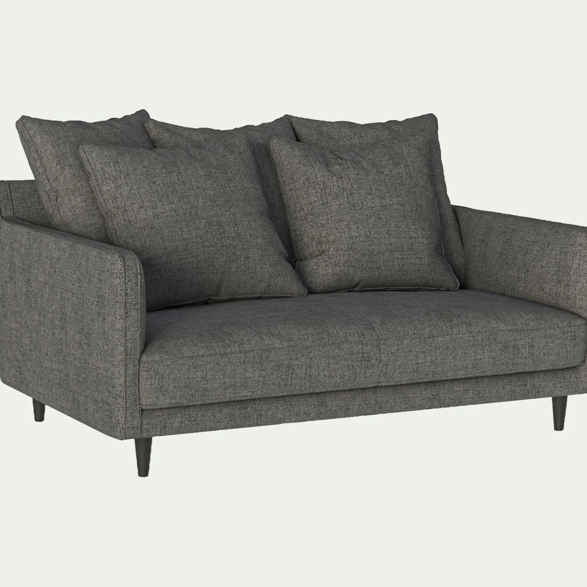Assise et dossier : Assise en mousse polyuréthane densité 30kg/m3 et couette en fibre polyester. Coussins dossier garnissage plumes d’oies et fibre polyester, 3 coussins de dos 60x60cm et 2 coussins de dos 50x50cm.