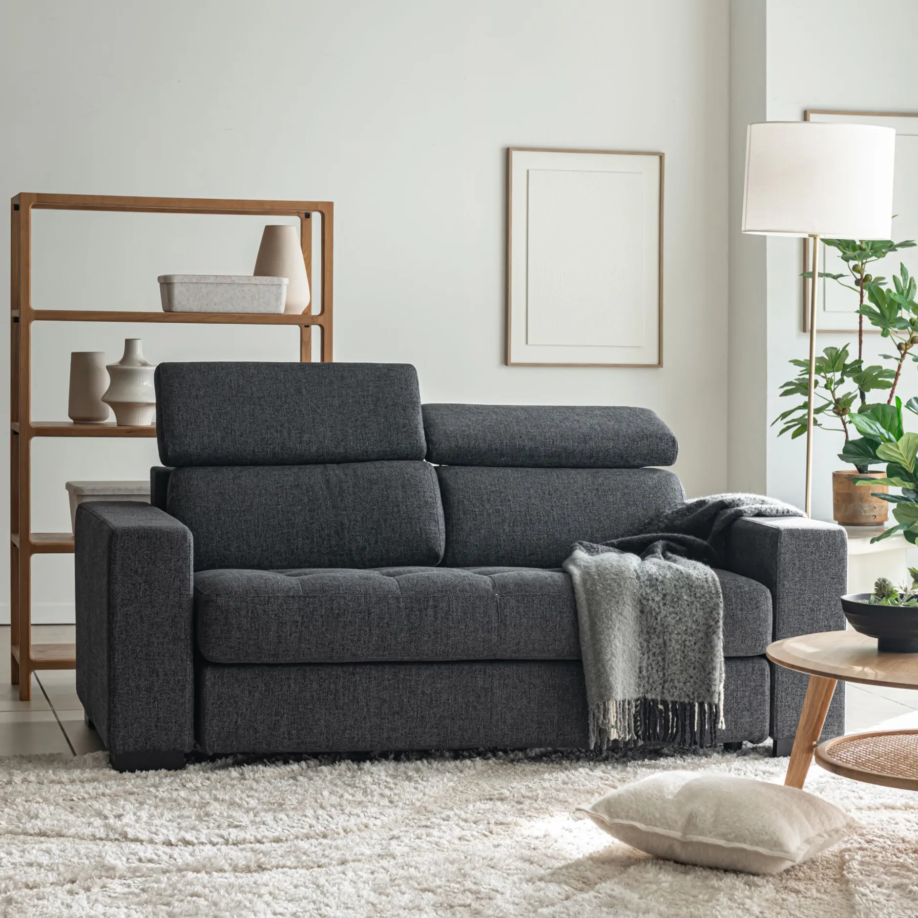 Mauro est une gamme de canapés au style contemporain et d’une grande élégance. Conçu en Italie, il est le fruit d’un travail minutieux et d’un savoir-faire unique. Ce canapé 2 places gris anthracite, arborant de larges accoudoirs et des têtières relevables, vous procurent un confort d’assise incomparable et vous invite à savourer d’agréables moments de détente. Un meuble de fabrication européenne qui sera la pièce maîtresse de votre salon va et sublimera votre décoration d’intérieur.