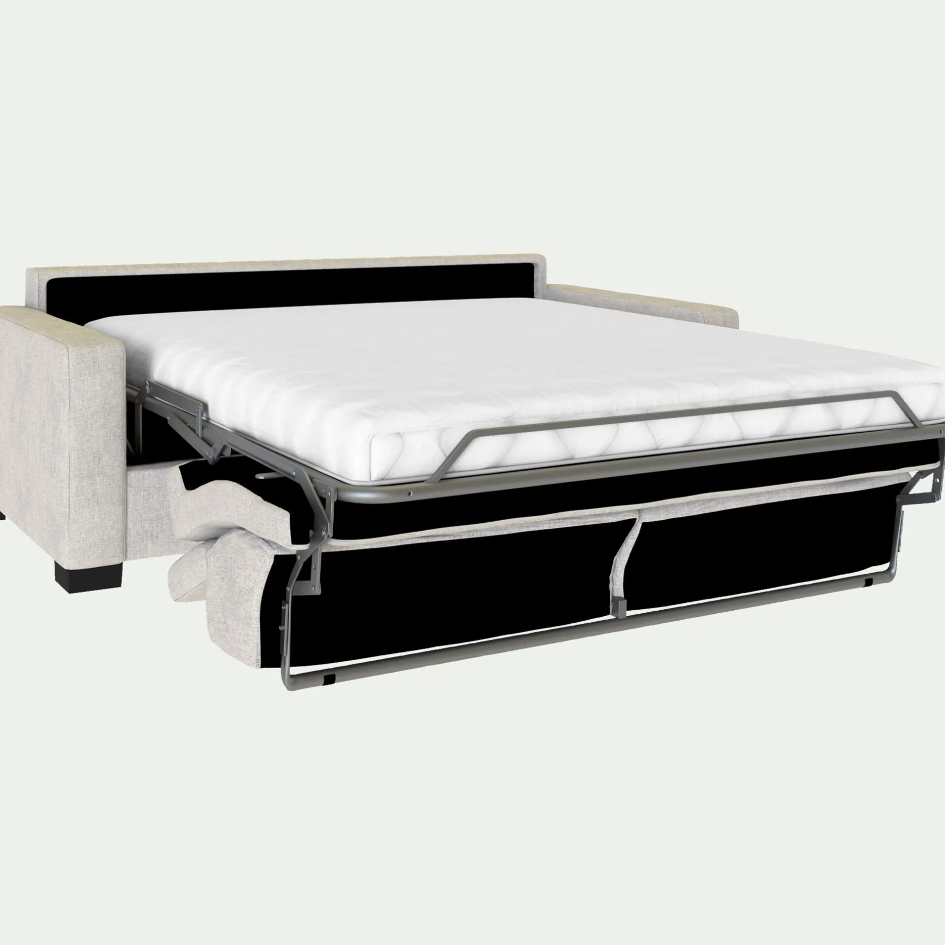 Sommier : électro-soudé et sangles élastiques, complété d’un matelas Bultex.