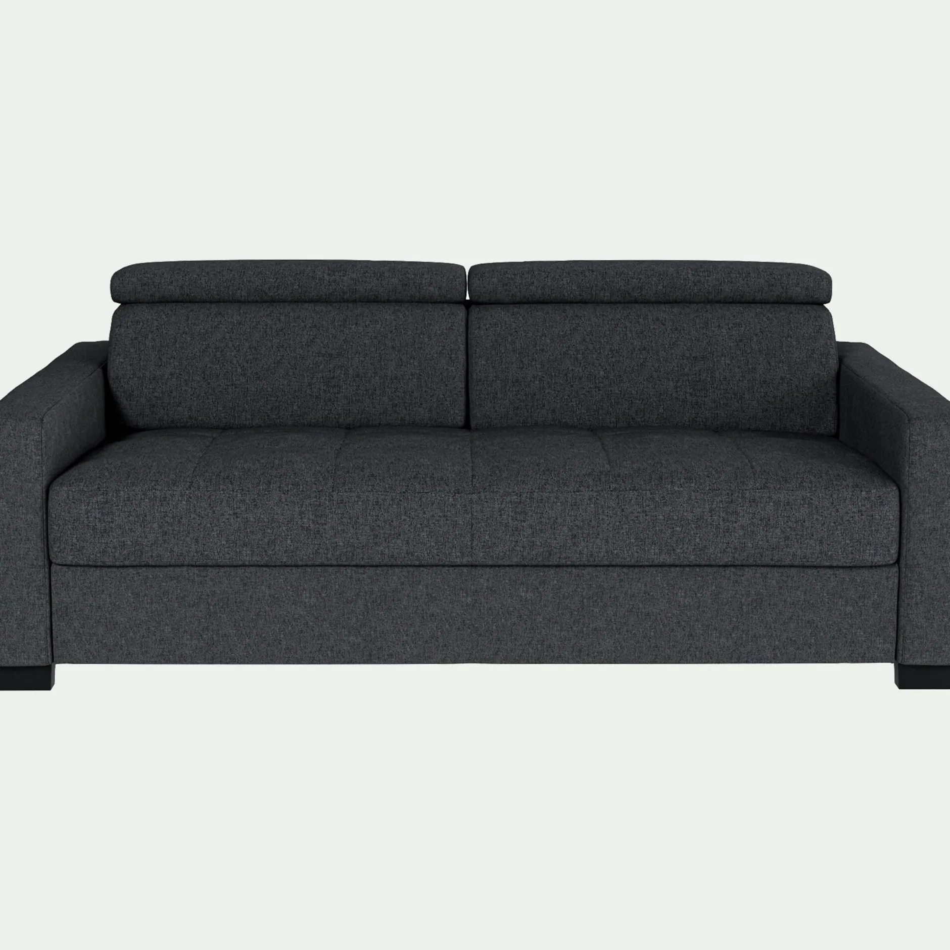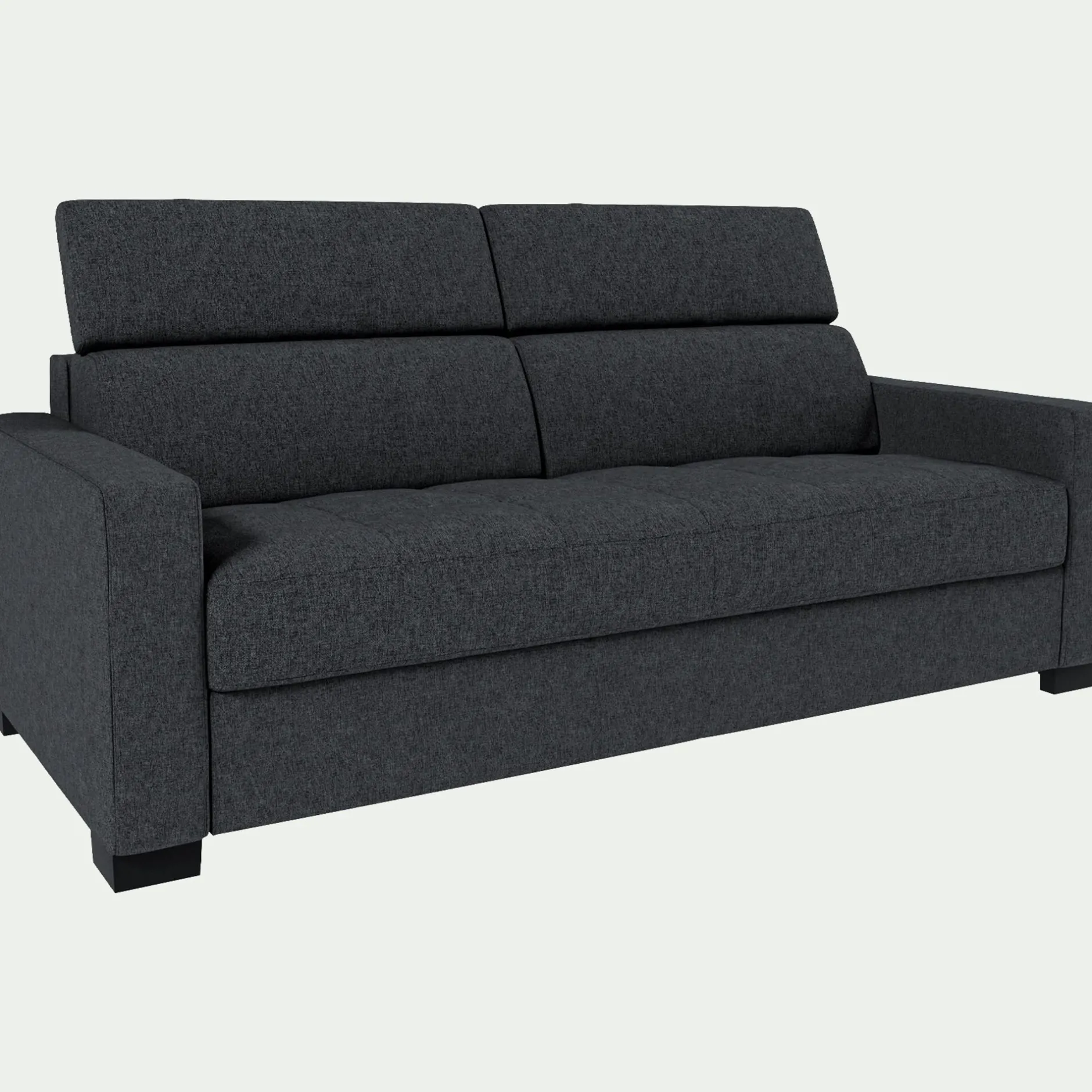 Mauro est une gamme de canapés au style contemporain et d’une grande élégance pour décorer votre salon. Conçu en Italie, il est le fruit d’un travail minutieux et d’un savoir-faire unique. Ce canapé 3 places en tissus pop couleur gris anthracite, arborant de larges accoudoirs de 15 cm et des têtières relevables, vous procurent un confort d’assise incomparable et vous invite à savourer d’agréables moments de détente. Avec sa fonction convertible, vous pourrez le transformer en un confortable couchage afin d’accueillir famille et amis sur un matelas Bultex. Un meuble de fabrication européenne qui sera la pièce maîtresse de votre salon va et sublimera votre décoration d’intérieur.