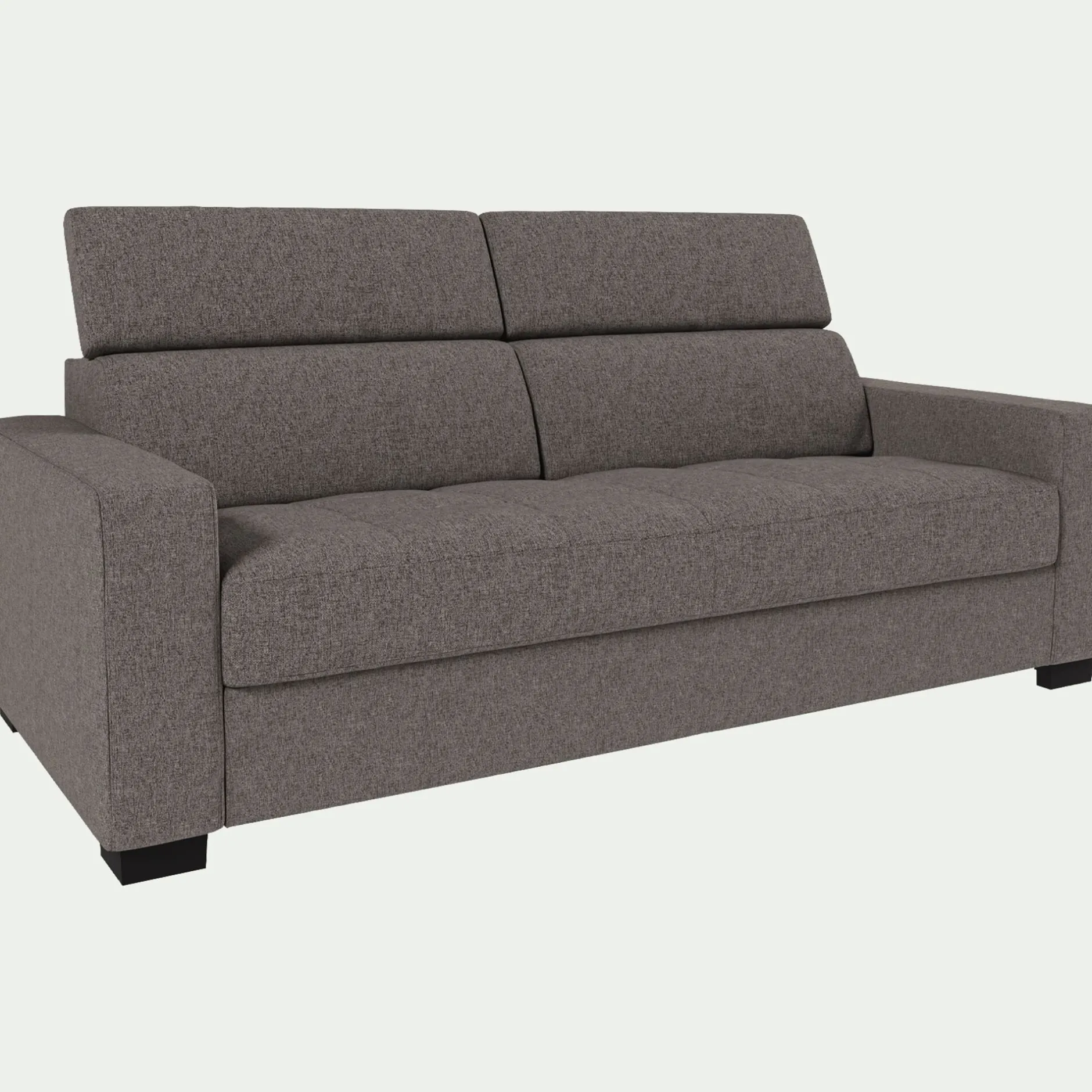 Mauro est une gamme de canapés au style contemporain et d’une grande élégance pour décorer votre salon. Conçu en Italie, il est le fruit d’un travail minutieux et d’un savoir-faire unique. Ce canapé 3 places en pop de couleur taupe, arborant de larges accoudoirs et des têtières relevables, vous procurent un confort d’assise incomparable et vous invite à savourer d’agréables moments de détente. Avec sa fonction convertible, vous pourrez le transformer en un confortable couchage afin d’accueillir famille et amis. Un meuble de fabrication européenne qui sera la pièce maîtresse de votre salon va et sublimera votre décoration d’intérieur.