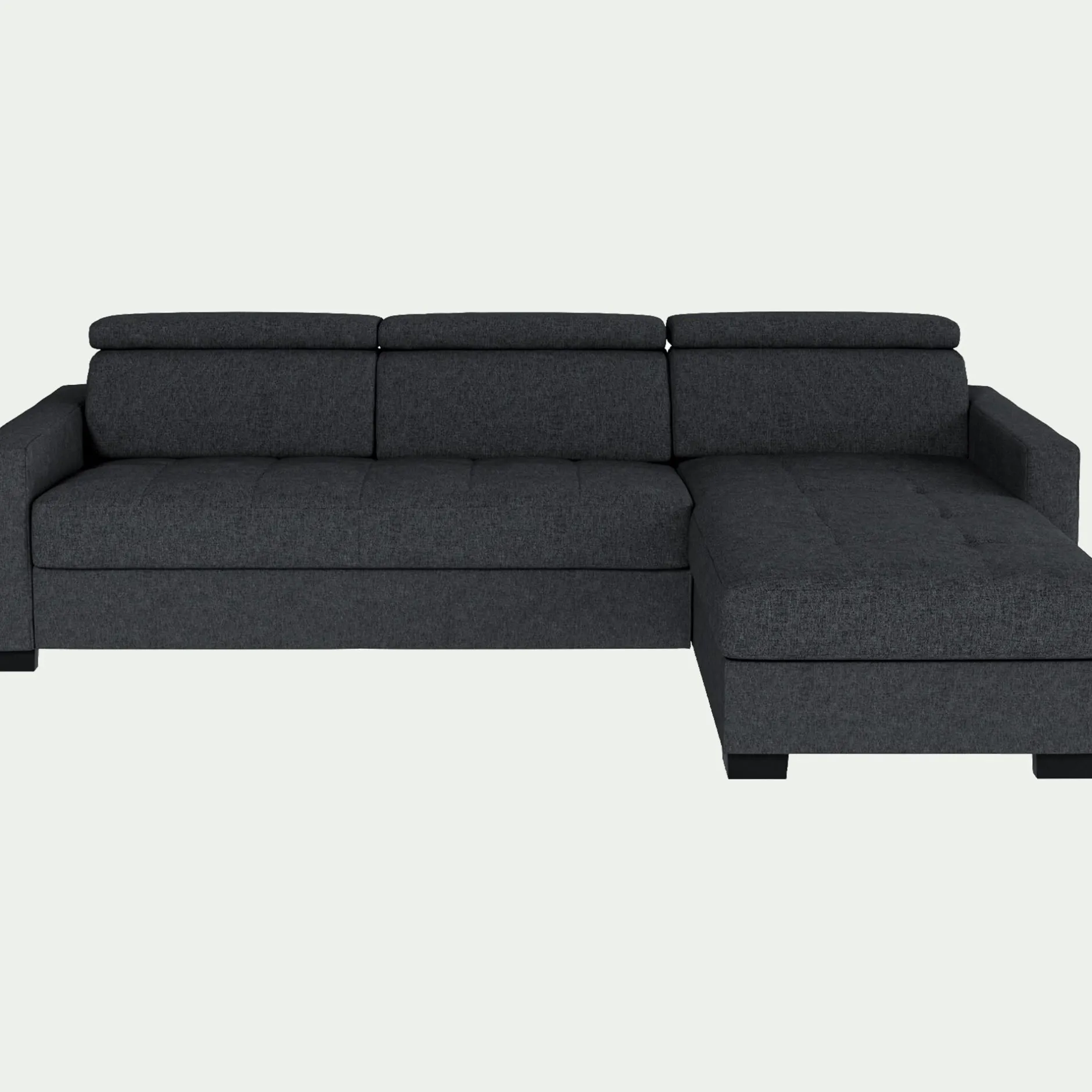 Mauro est une gamme de canapés au style contemporain et d’une grande élégance pour décorer votre salon. Conçu en Italie, il est le fruit d’un travail minutieux et d’un savoir-faire unique. Ce canapé d’angle en tissu pop couleur Gris anthracite, arborant de larges accoudoirs de 15 cm et des têtières relevables, vous procure un confort d’assise incomparable et vous invite à savourer d’agréables moments de détente. Avec sa fonction convertible, vous pourrez le transformer en un confortable couchage afin d’accueillir famille et amis. Un meuble de fabrication européenne qui sera la pièce maîtresse de votre salon et sublimera votre décoration d’intérieur.