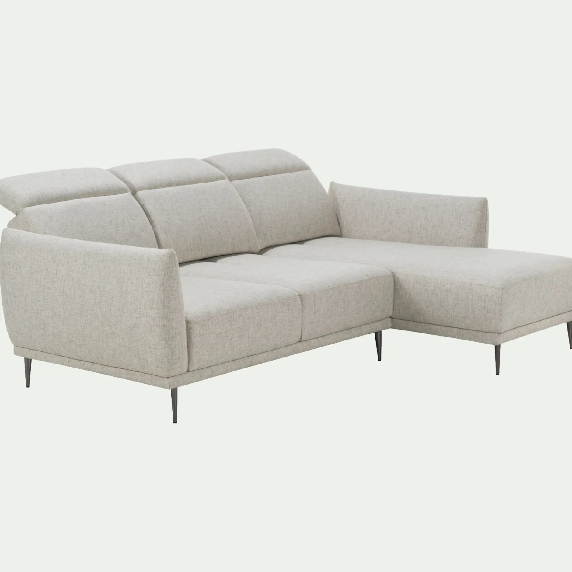 Optez pour ce canapé d’angle droit 3 places fabriqué en Roumanie. Il arbore un design sobre et chic, ainsi qu’une couleur intemporelle beige roucas qui s’accordera avec charme à la décoration de votre salon. Du confort, une assise profonde et généreuse, grâce à un système de dossier qui peut reculer, Marko est un beau canapé qui conviendra parfaitement comme pièce maîtresse de votre pièce de vie. De plus, vous pouvez relever les têtières pour pouvoir être bien installé devant la télé ou lire un livre. Un canapé à la fois déco et d’une qualité exceptionnelle, c’est un meuble qui saura vous séduire.